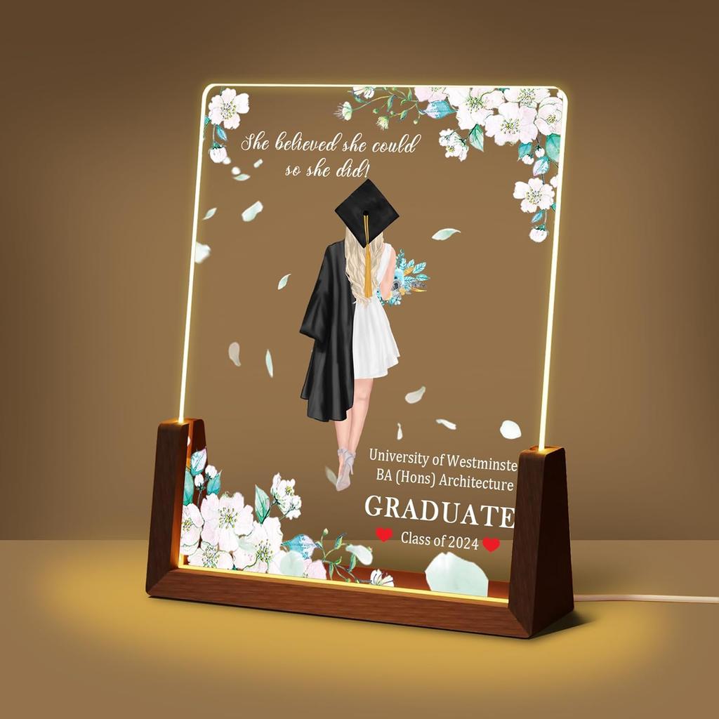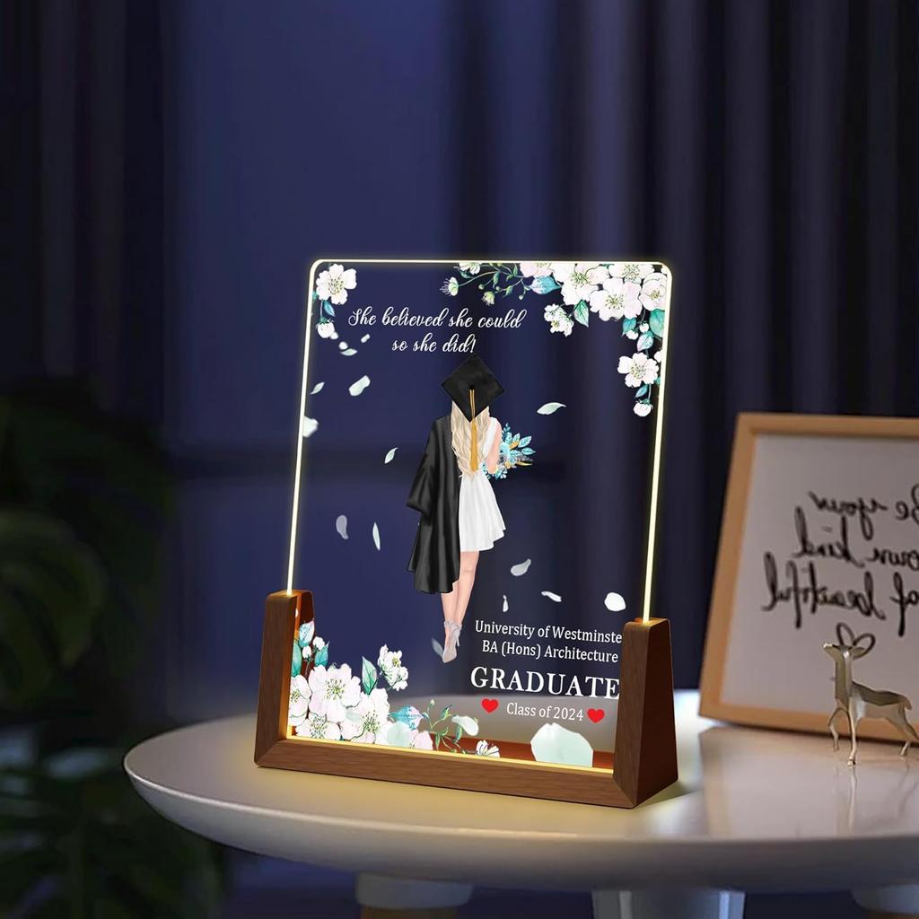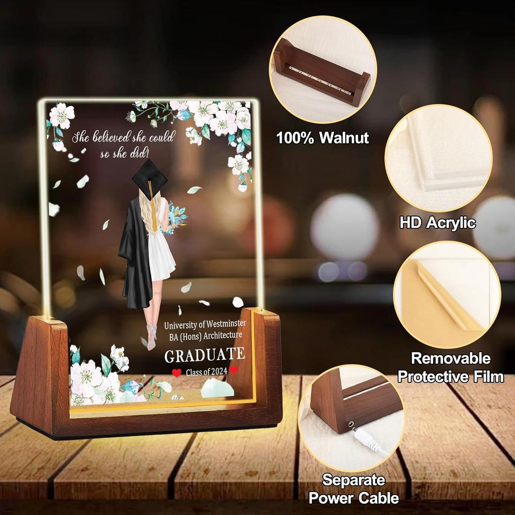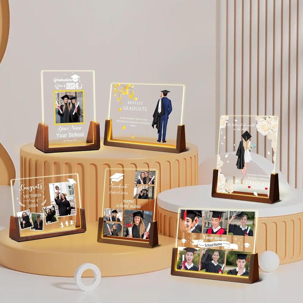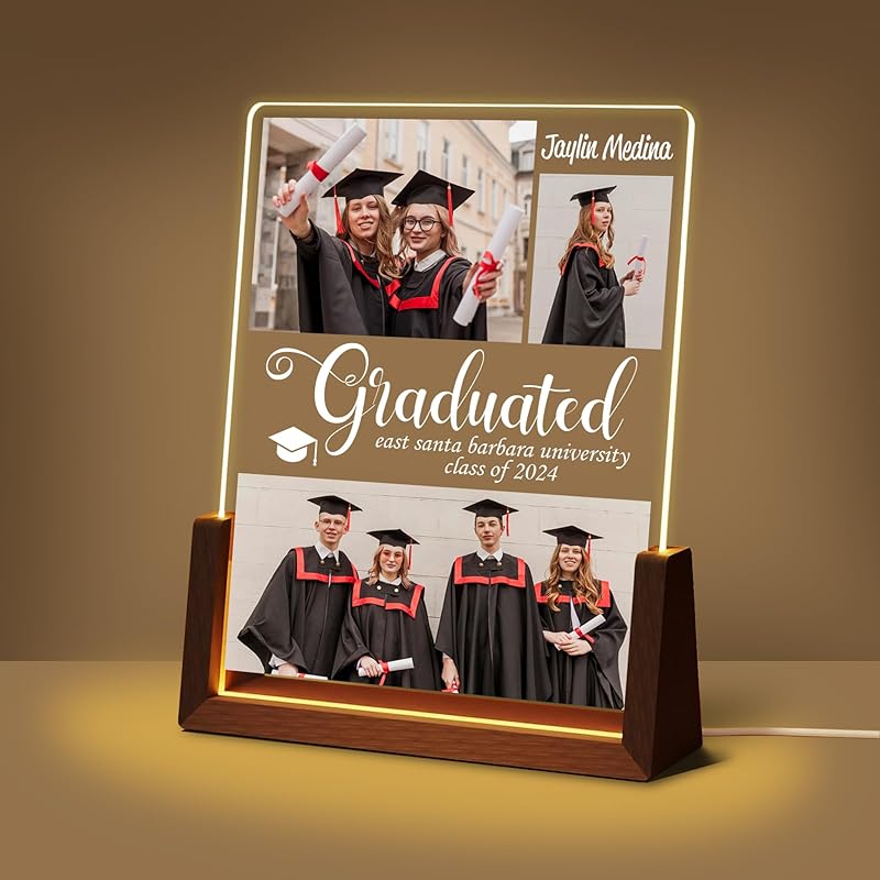 Идеи персонализированных подарков на выпускной: Изготовленный на заказ акриловый ночник с фотографией и именем — практичный и трогательный подарок. Это лучший подарок на выпускной для дочери, сына, племянника, племянницы, одноклассника, друга, сестры, брата.. Его также можно использовать в качестве подарка на день рождения, Рождество, годовщину, подарок паре, студенческий подарок, подарок лучшему другу и т. д.