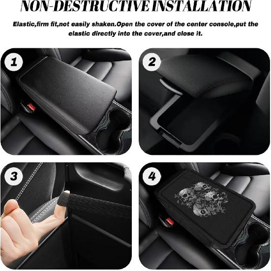 Чехол на центральную консоль автомобиля с принтом черепа, нескользящий чехол на подлокотник для автомобиля, универсальные защитные чехлы для подлокотников, подходят для автомобилей, внедорожников, декоративные чехлы для автомобилей