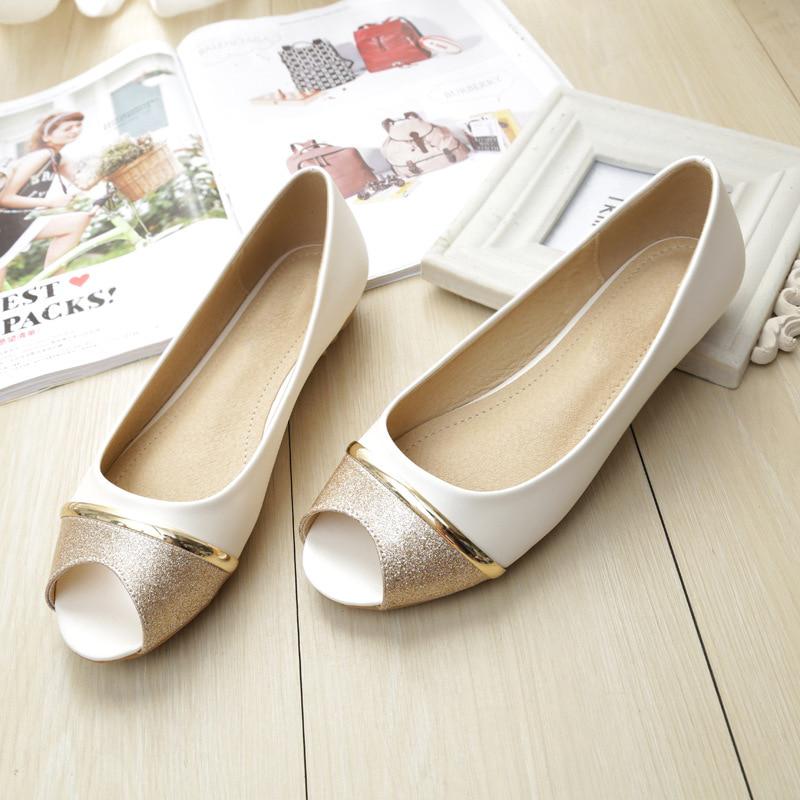 Модные женские туфли на плоской подошве с открытым носком. Удобные женские туфли из искусственной кожи розового, золотого и белого цвета.