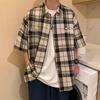 Мужская клетчатая рубашка с короткими рукавами в студенческом стиле - весна/лето 2024 г. — купить товар онлайн с бесплатной доставкой до всему миру!