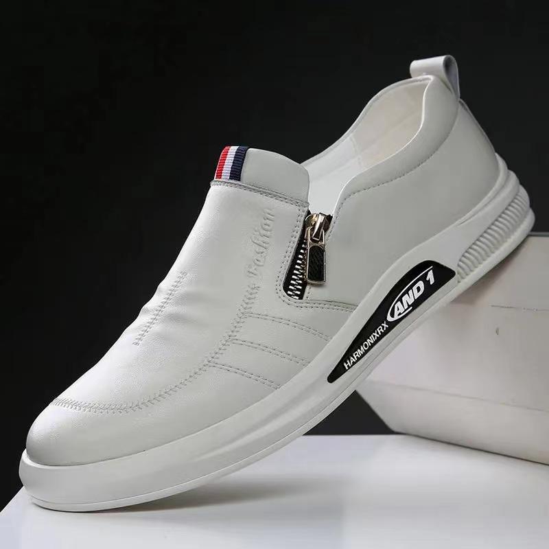 Кожаная обувь для мужчин Весенняя новая корейская повседневная кожаная обувь Маленькие белые туфли Модная и трендовая Дышащая обувь для вождения