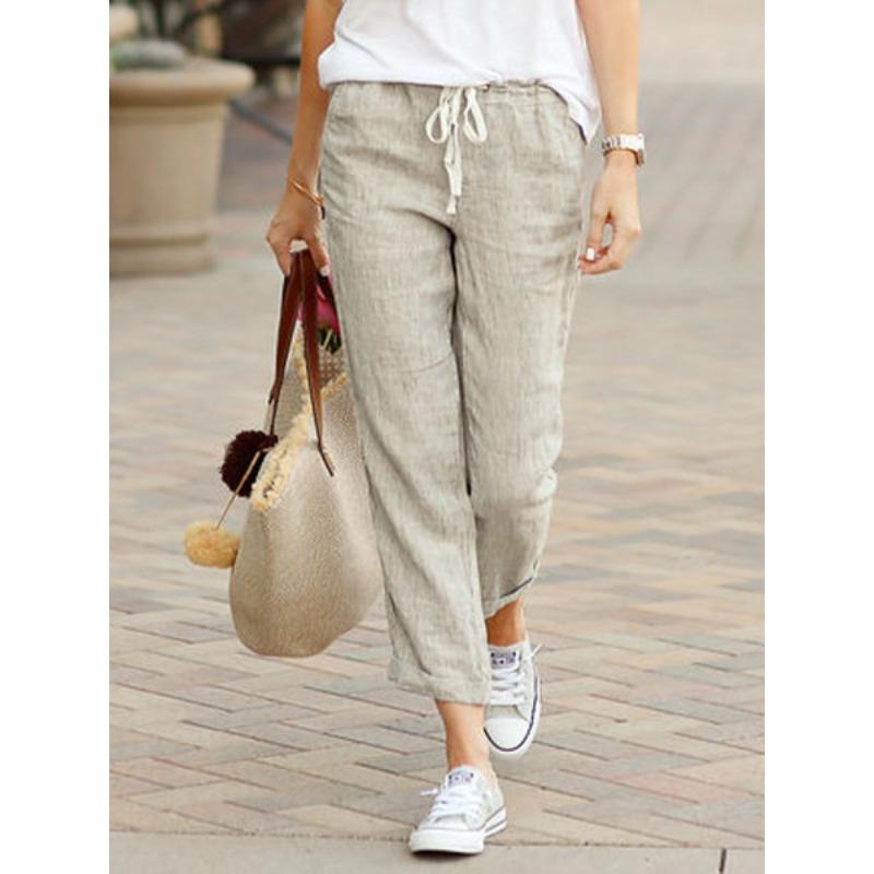 Новые однотонные свободные повседневные брюки-капри с эластичной резинкой на талии из хлопка и льна для женщин, зауженные брюки-капри с завязками, брюки с карманами