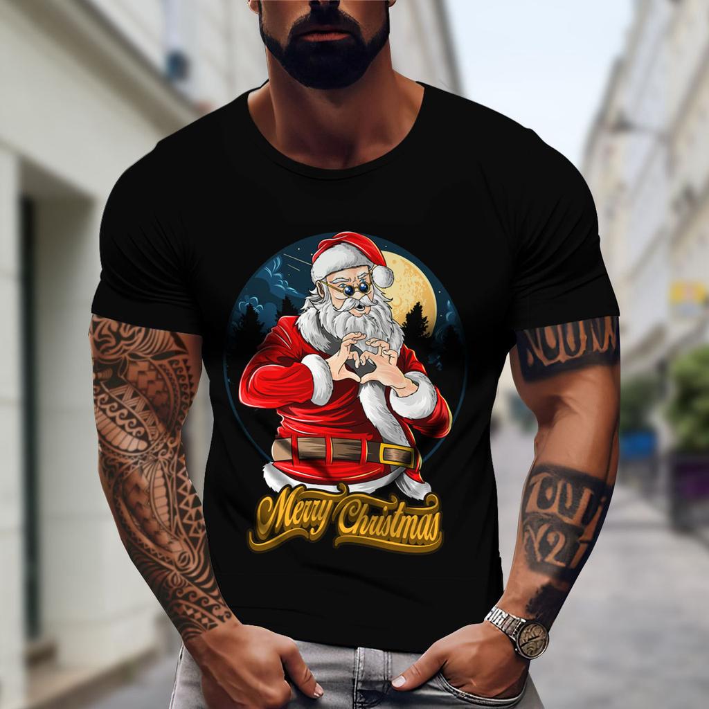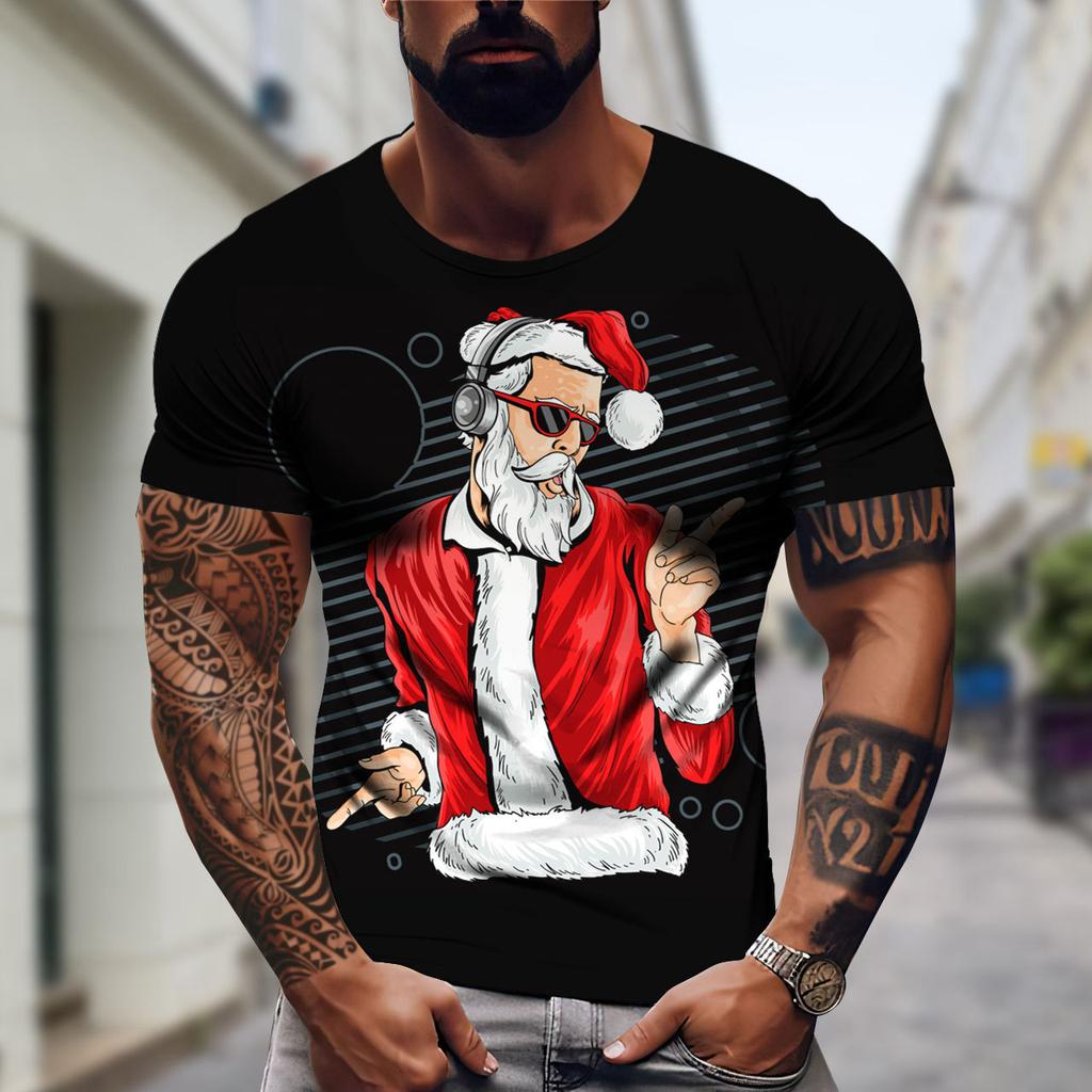 Футболка мужская летняя с короткими рукавами и рисунком Санта-Клауса, футболка с 3D-принтом