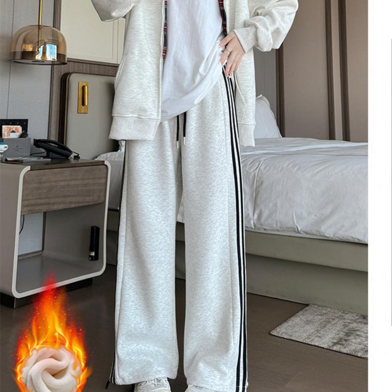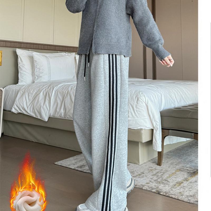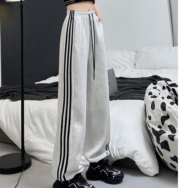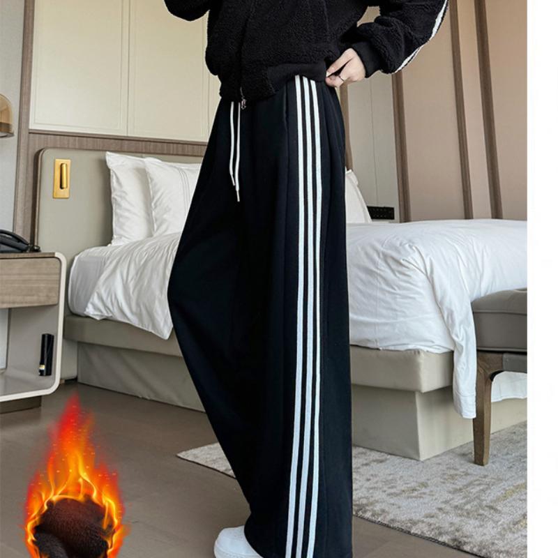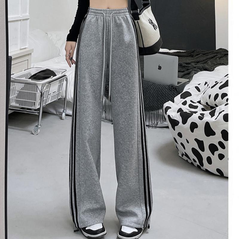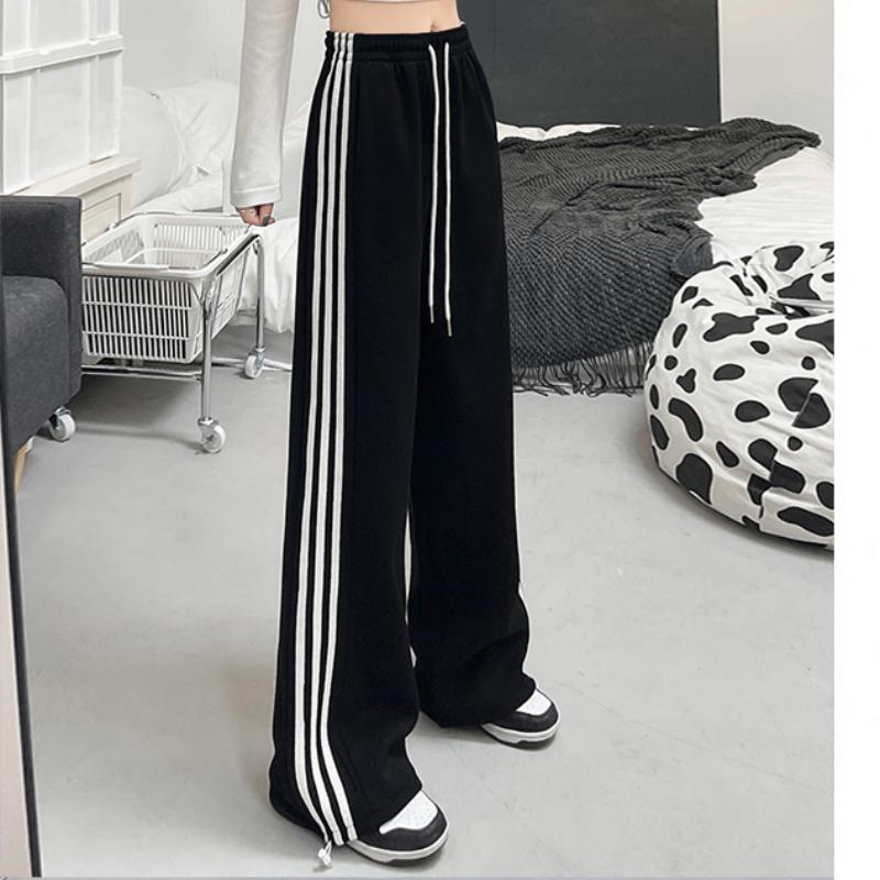 Женские осенне-зимние новые свободные повседневные брюки с высокой талией, прямые спортивные брюки в полоску