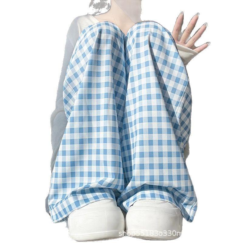 Розовые клетчатые брюки для женской весны, новые, повседневные, свободные, с высокой посадкой, маленькие приспущенные широкие брюки