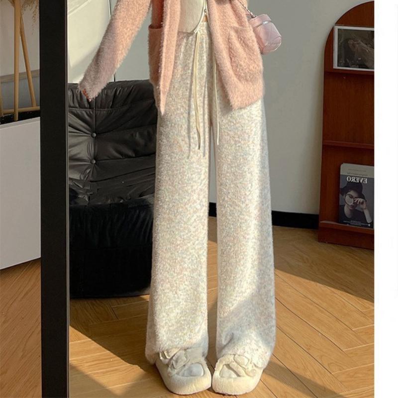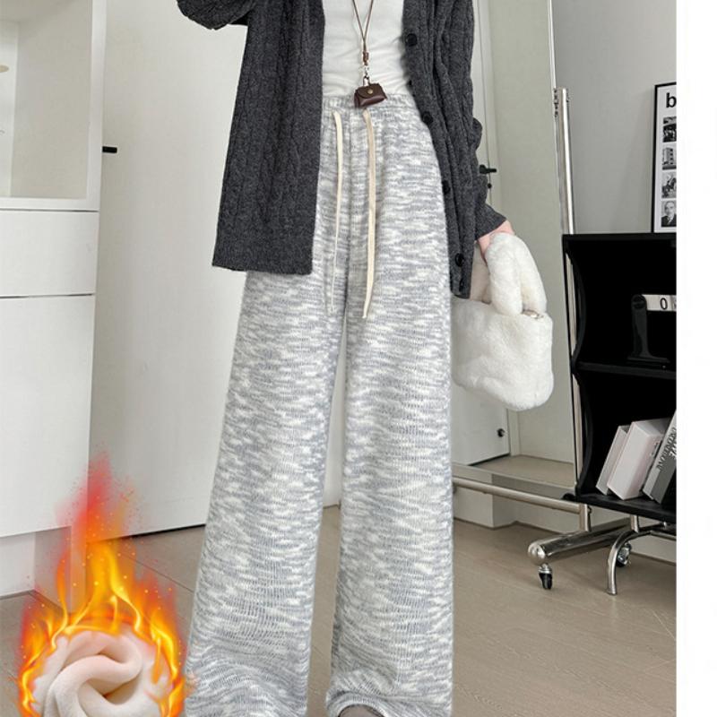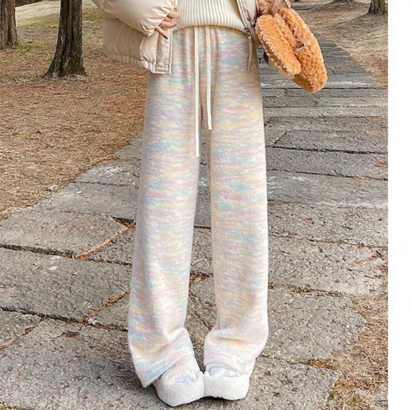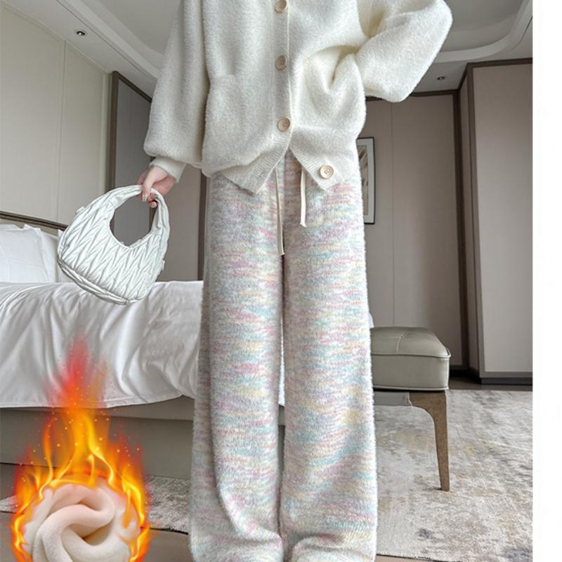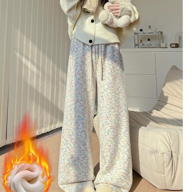 Радужные брюки из клейкого риса для женщин Осень-Зима Новые брюки с высокой талией, стройнящие и драпированные, широкие брюки, прямые брюки, повседневные брюки плюс бархатные брюки