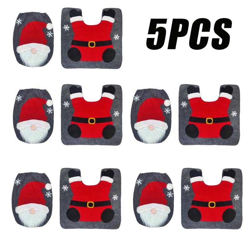 5 шт. Рождественский чехол на сиденье унитаза, чехол на сиденье унитаза и коврик в виде Санта-Клауса, рождественские аксессуары для ванной комнаты, рождественские украшения