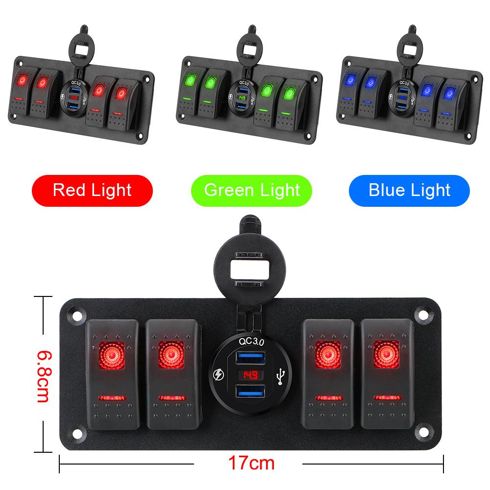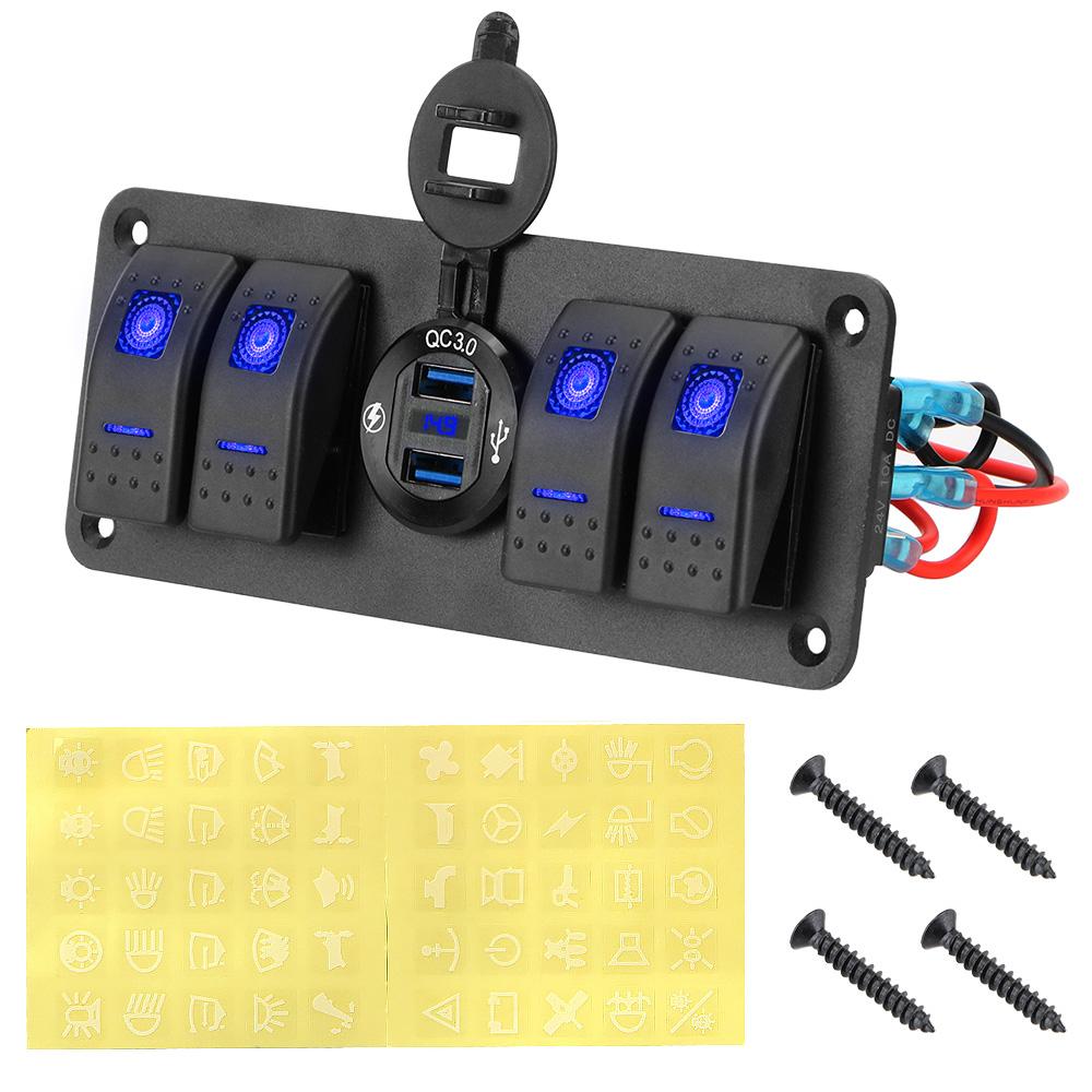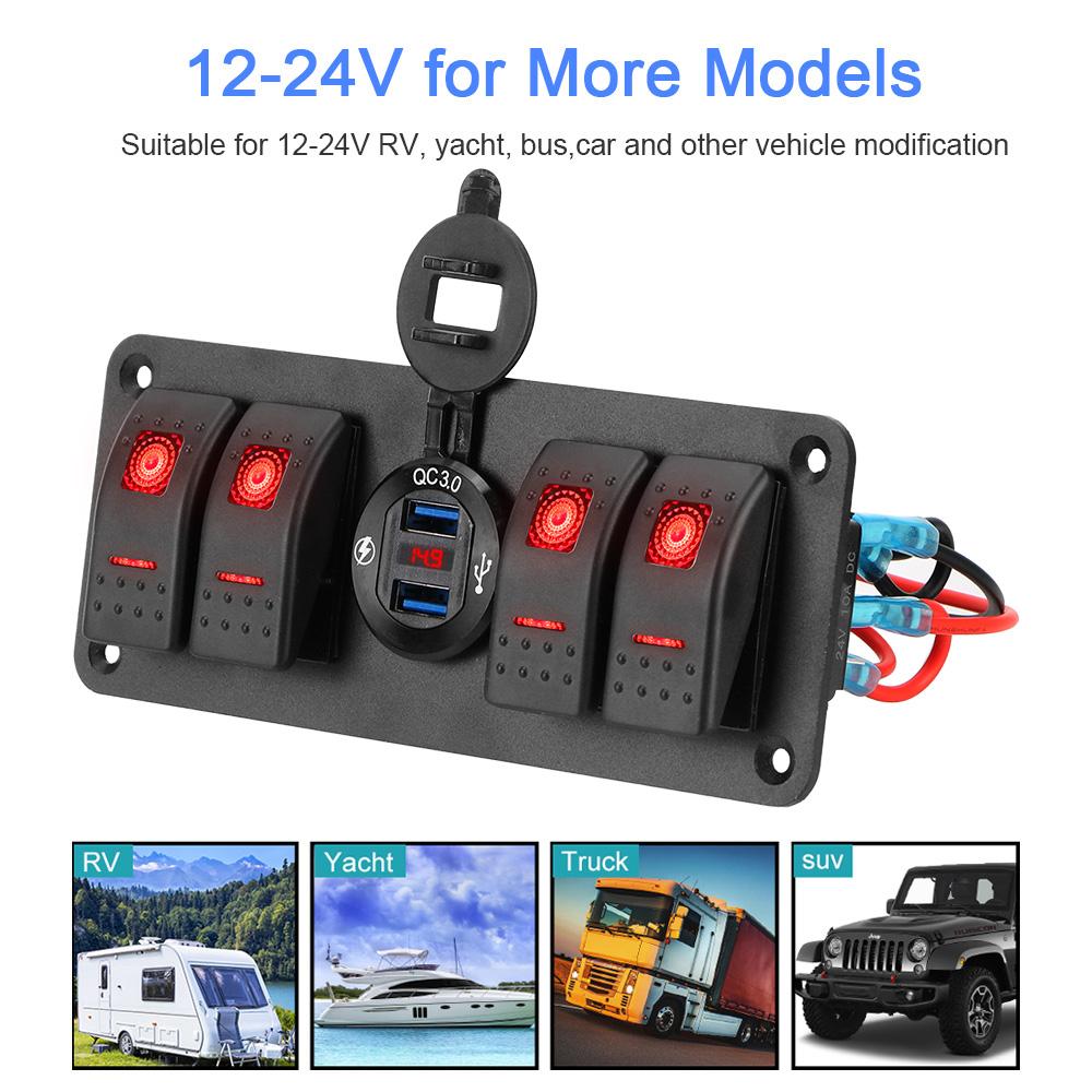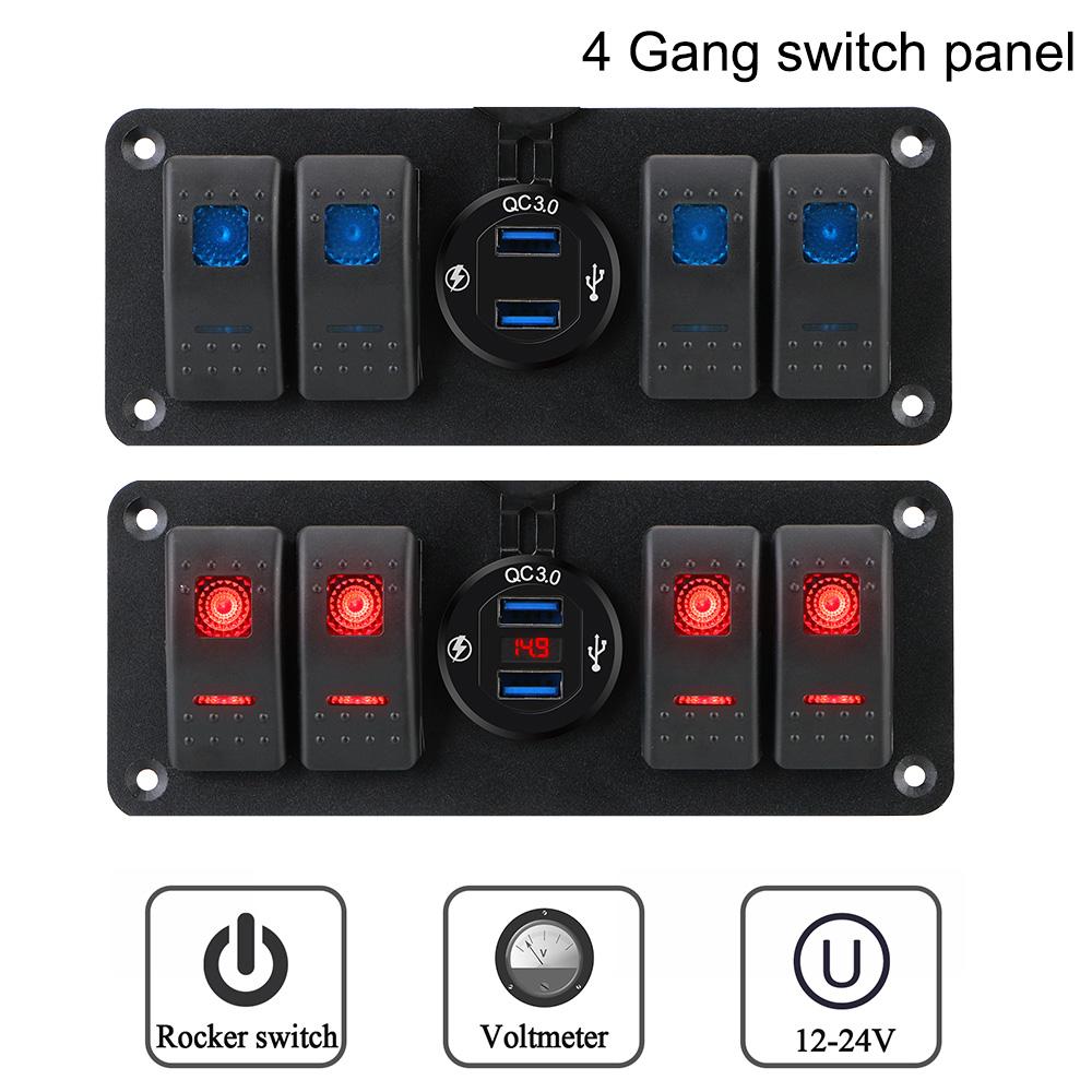Водонепроницаемая панель переключателей управления цепью 12 ~ 24 В для автомобиля, морская панель переключателей, 4-клавишный светодиодный цифровой вольтметр