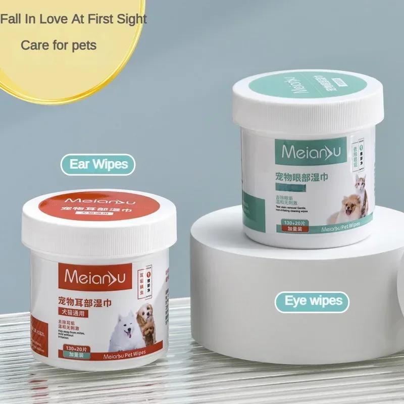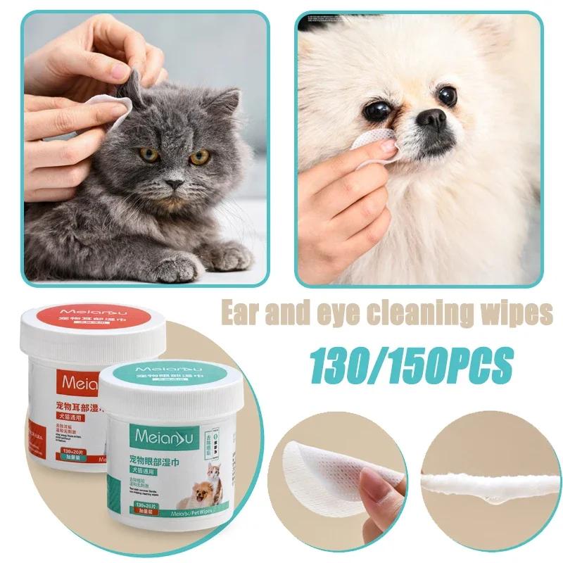 Влажные салфетки для чистки питомцев Глаза и уши Удаление грязи Очищающие салфетки Растительная эссенция Мягкие Не раздражающие Инструмент для общей чистки для кошки собаки