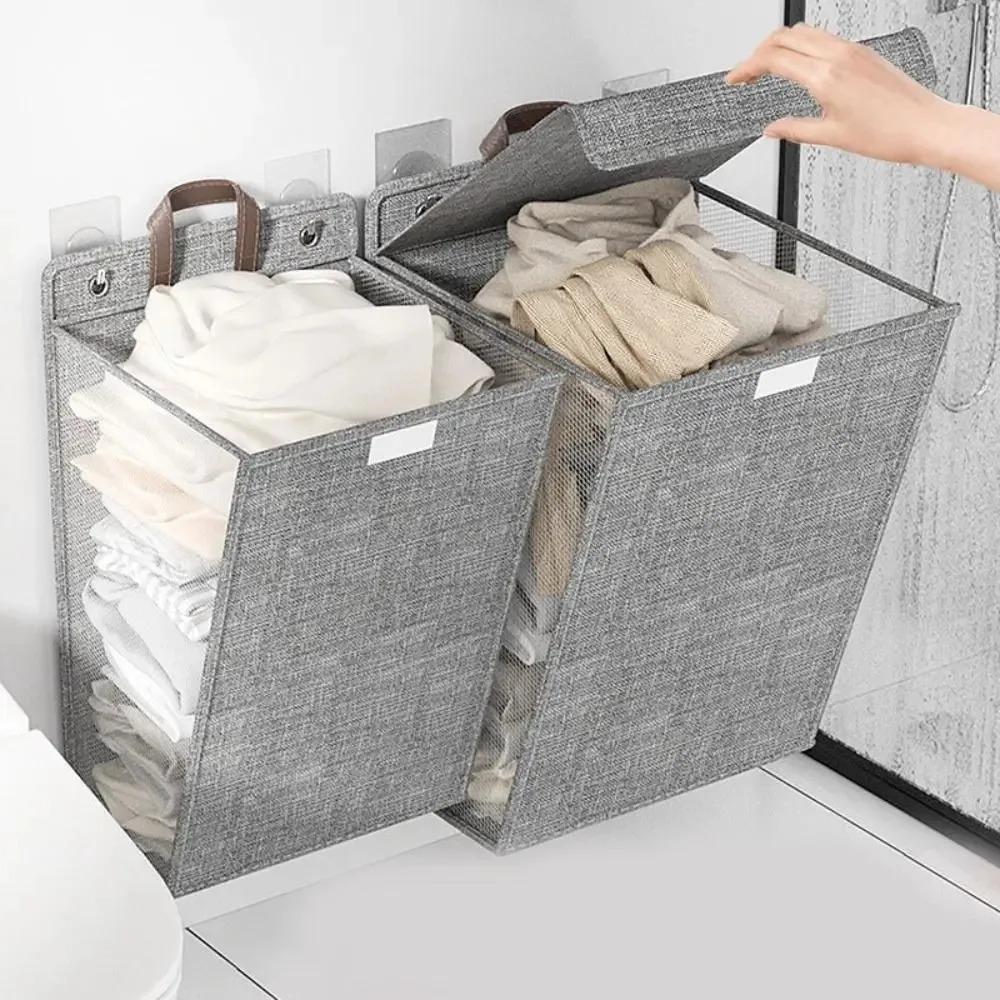 Складная самоклеящаяся корзина для белья, большая вместимость, водонепроницаемая корзина для хранения одежды, бытовая сетка для подвешивания без проколов