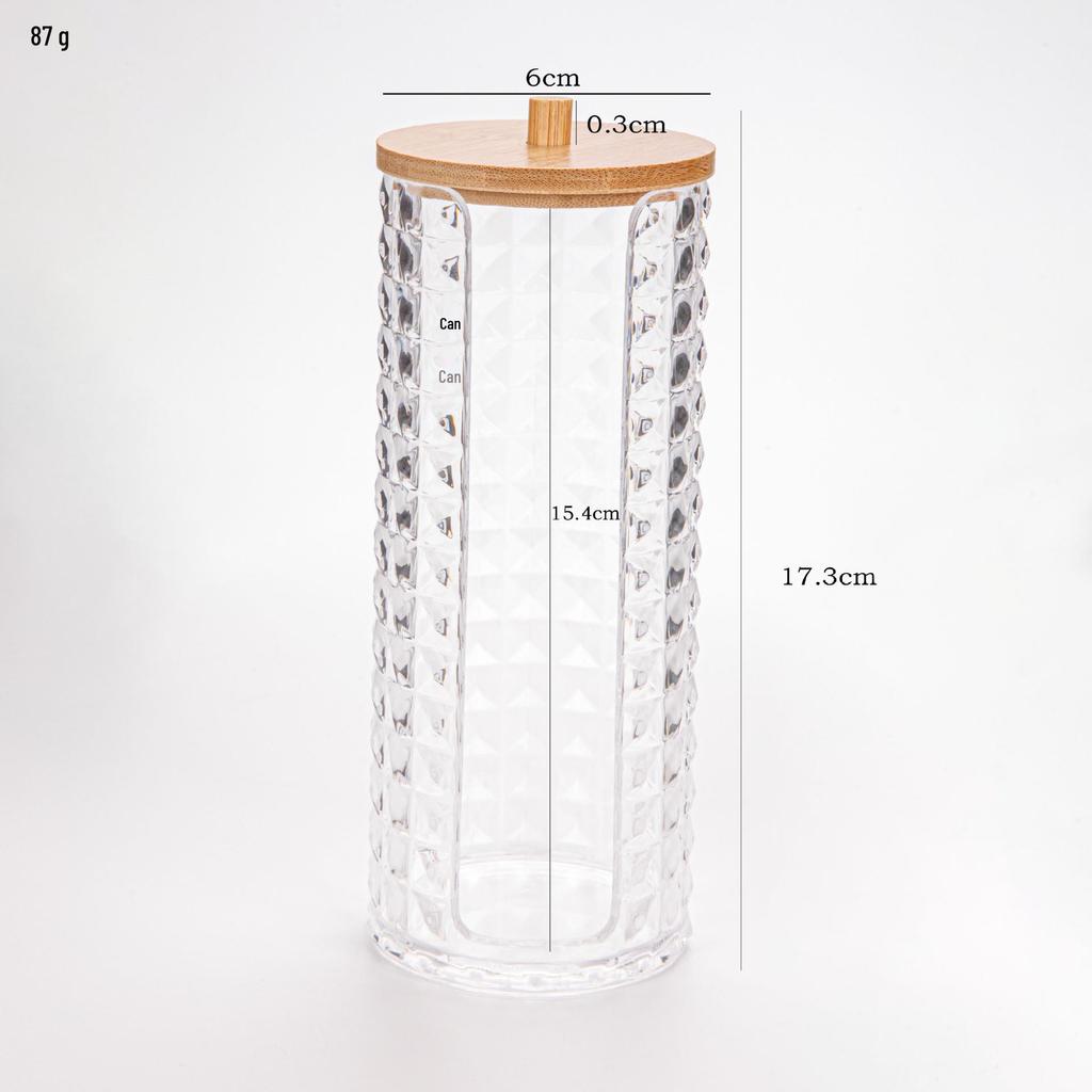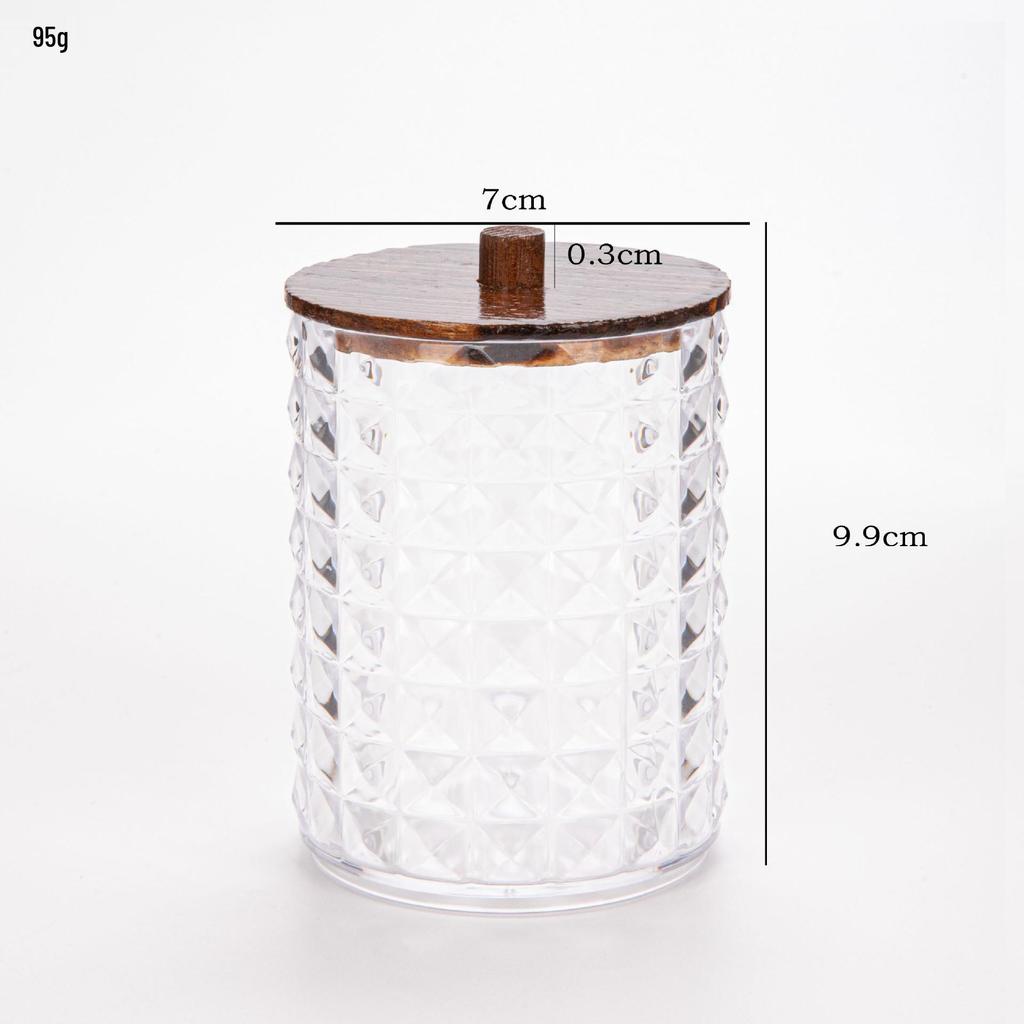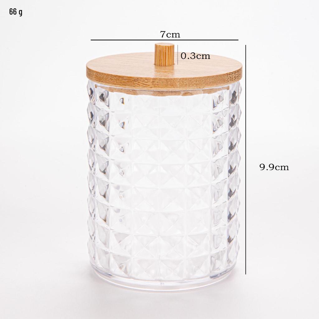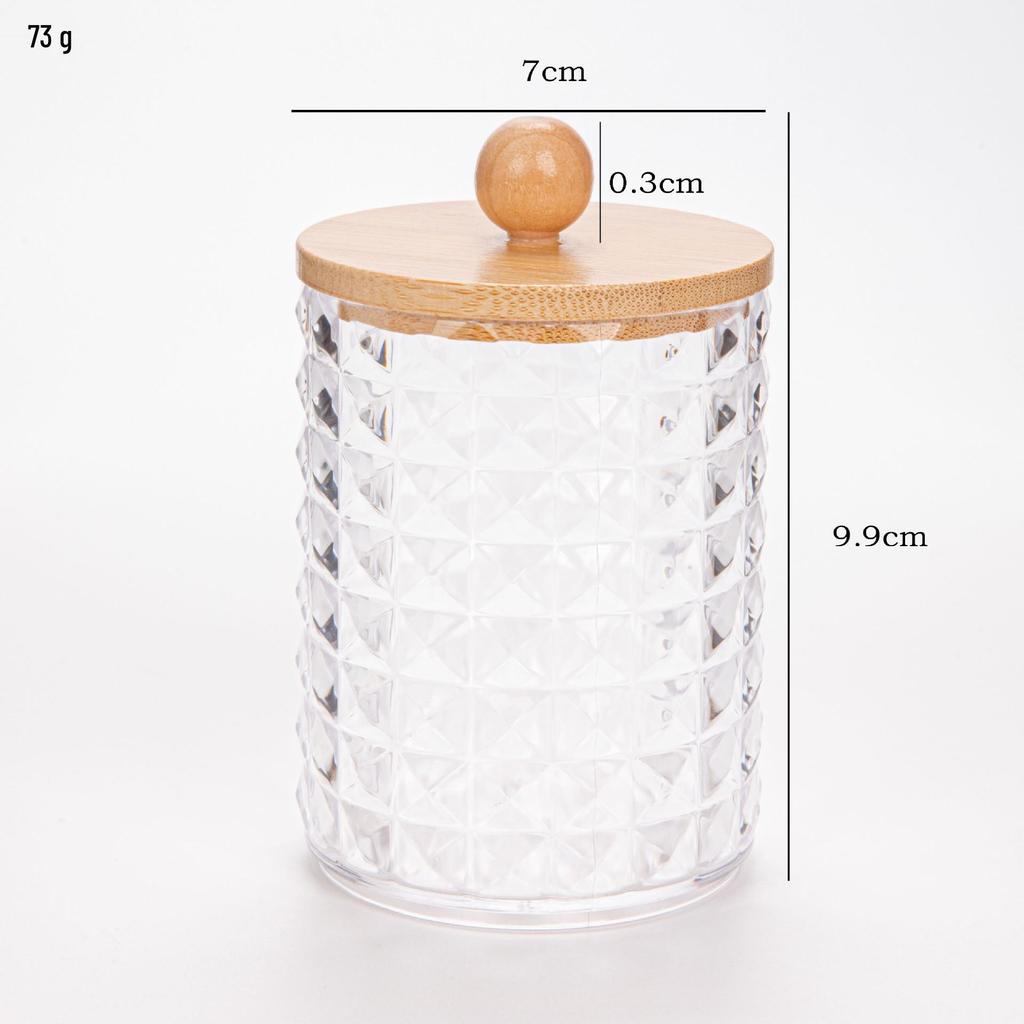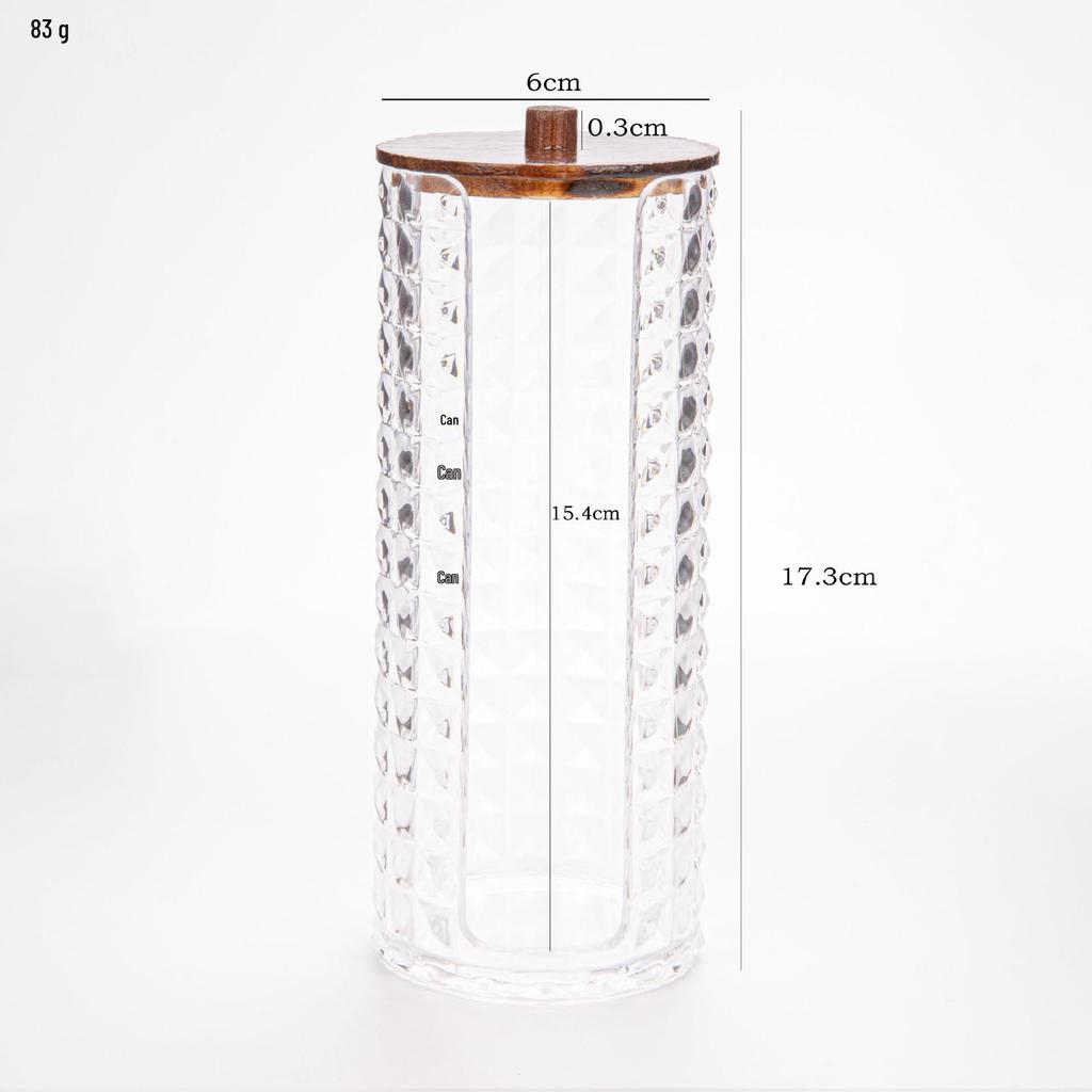 Прозрачный держатель для ватных палочек с ромбовидным узором - крышка из бамбука, переносная круглая косметическая коробка для хранения