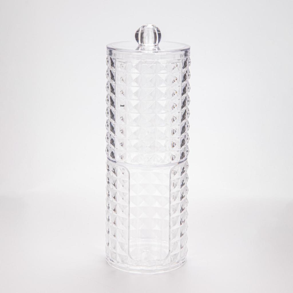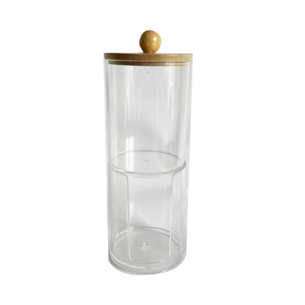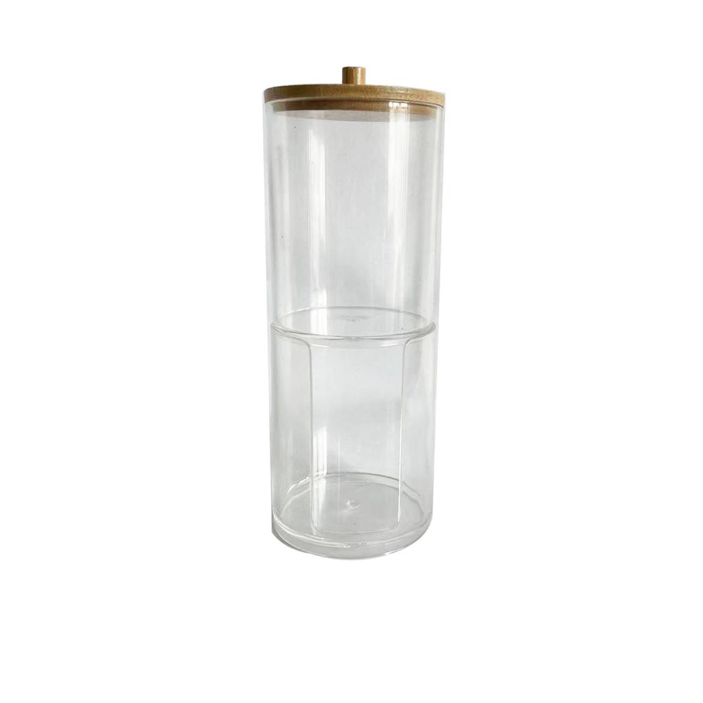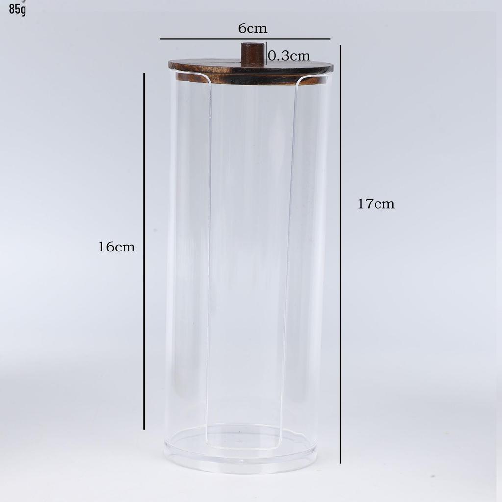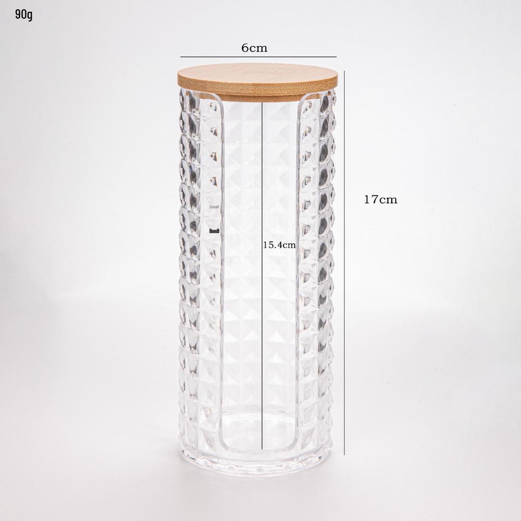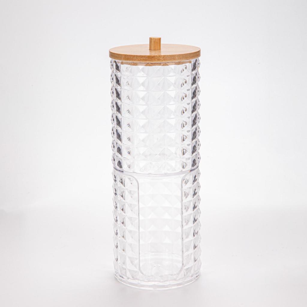 Прозрачный держатель для ватных палочек с ромбовидным узором - крышка из бамбука, переносная круглая косметическая коробка для хранения