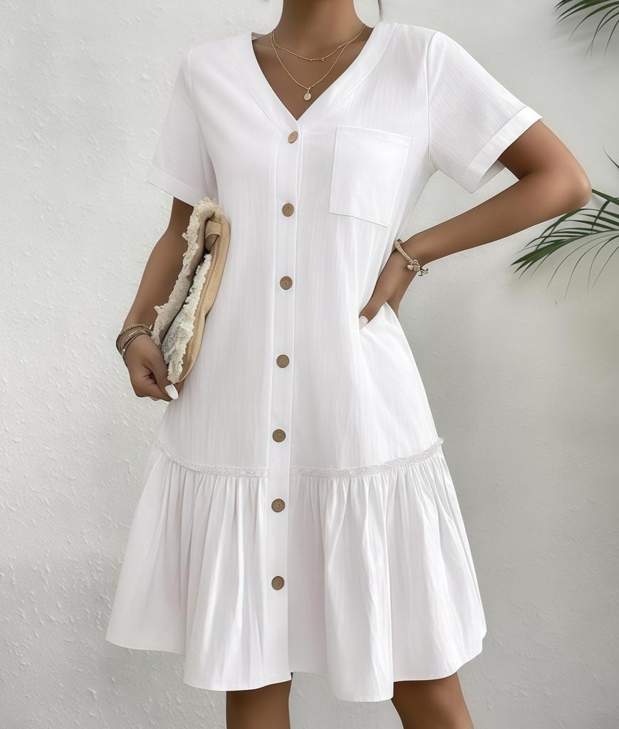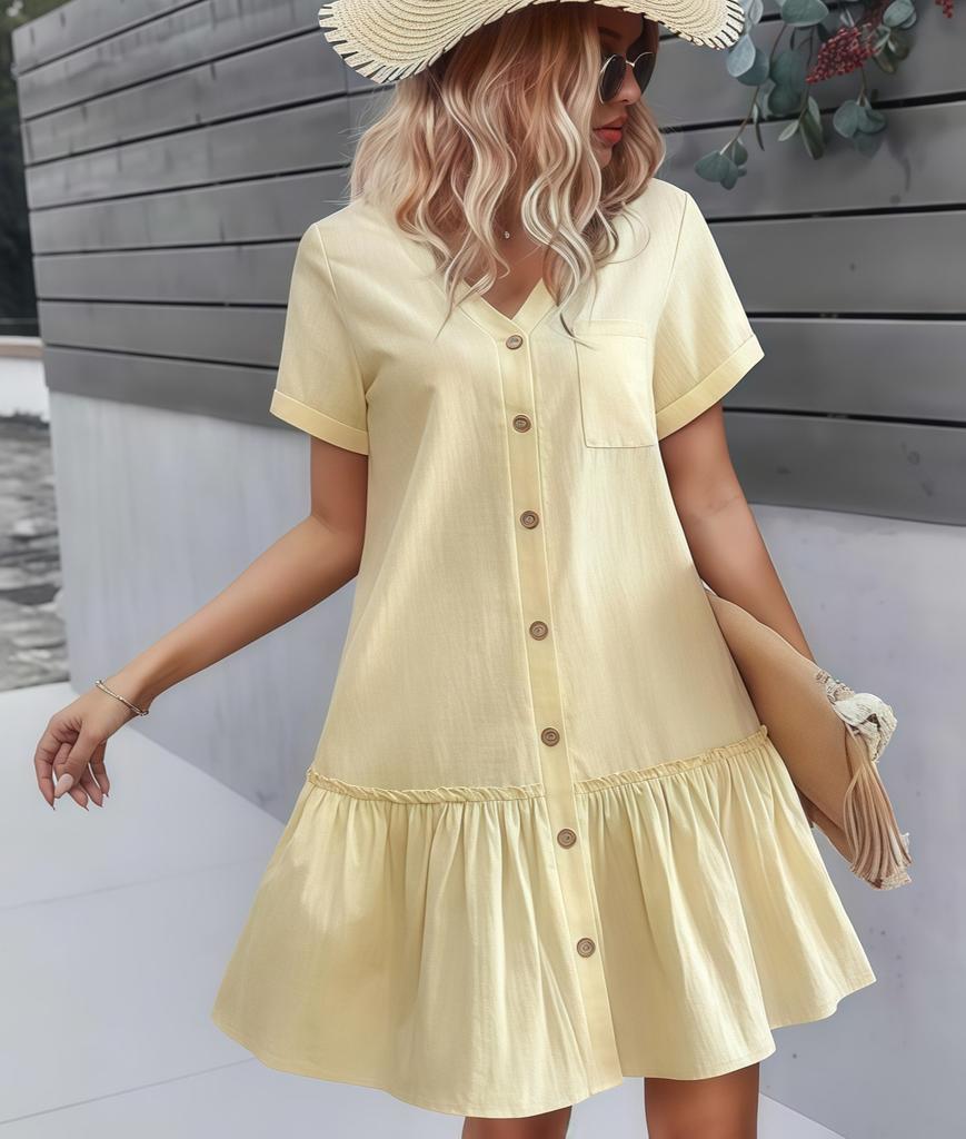 Женское летнее свободное хлопковое льняное платье с оборками и коротким рукавом, повседневное платье-рубашка с кардиганом