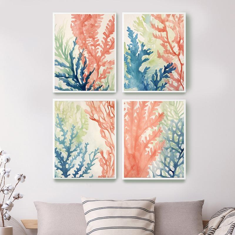 Сине-зелено-оранжевые водоросли и кораллы, постеры, печать на холсте, современное настенное искусство, картина для гостиной, украшение дома