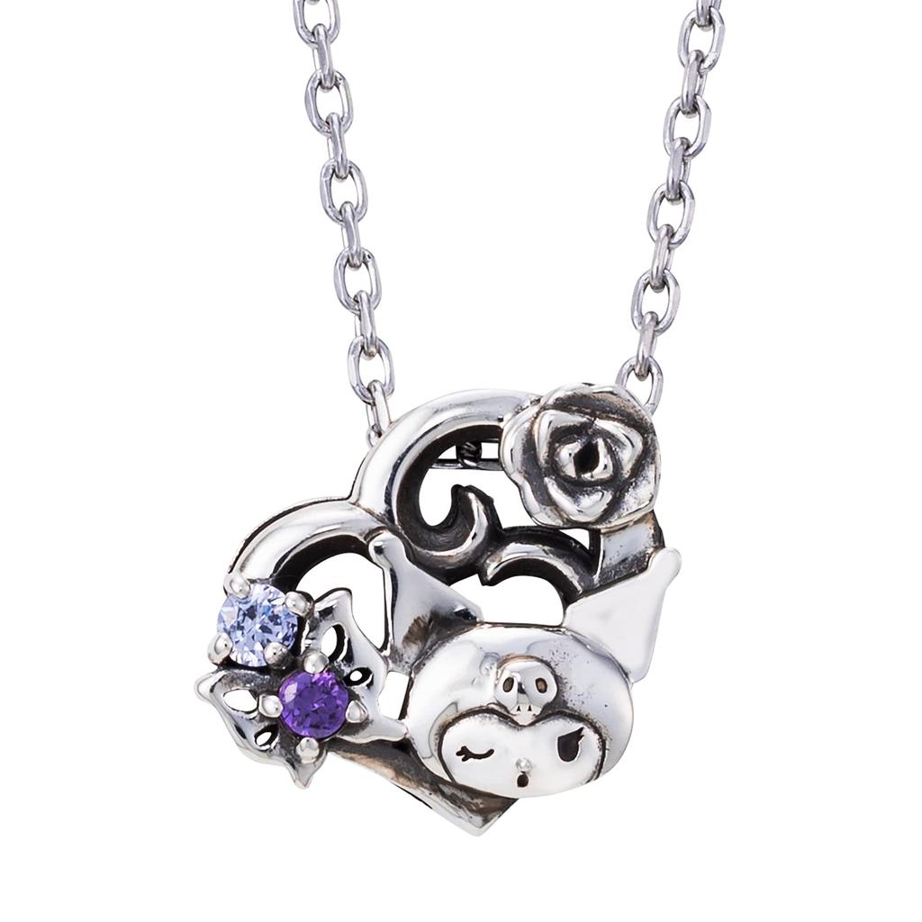 Ожерелье Kuromi 40 см, серебро 925 пробы, хирургическая нержавеющая сталь 316L, кубический цирконий, окисленное сердце, персонажи KUROMI Sanrio [Белый клевер] SAKU-N054 для женщин