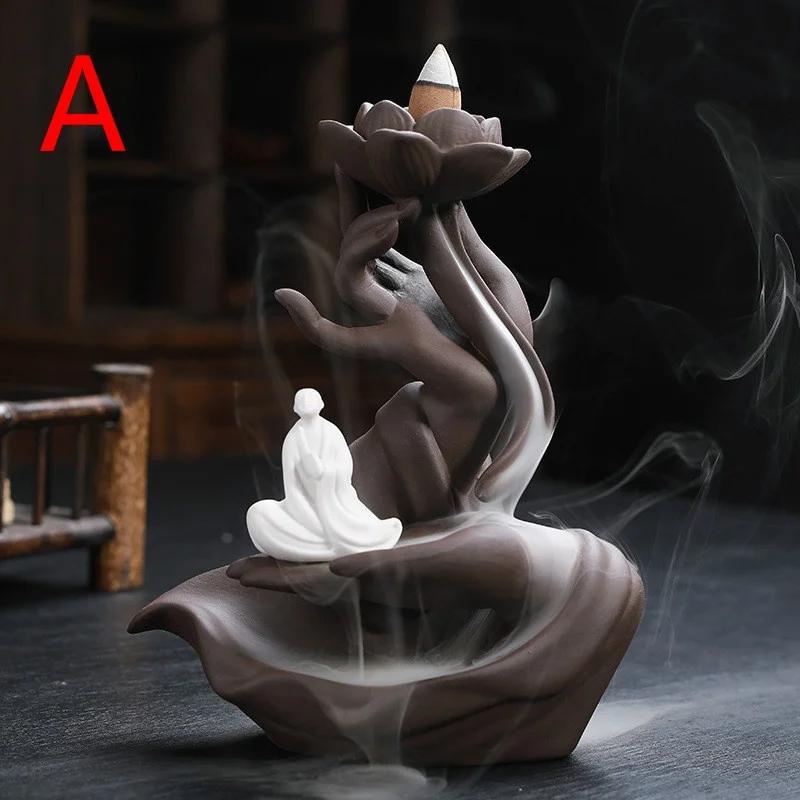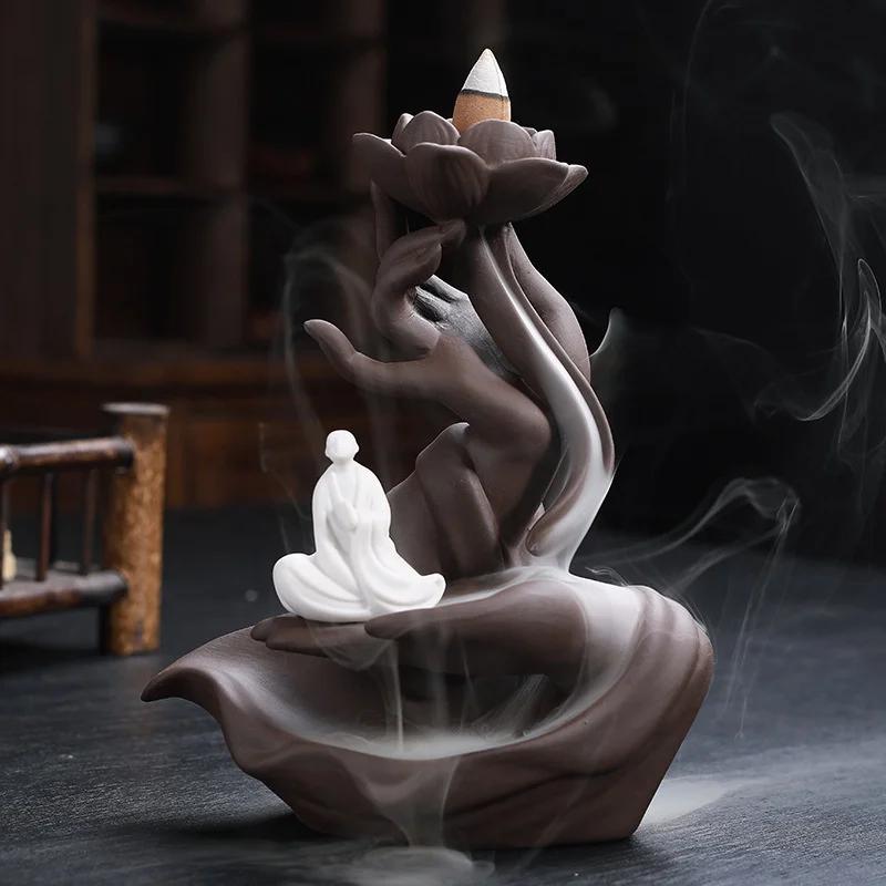 Бергамот Лотос Подставка для благовоний обратного потока Украшения Антикварная Подставка для благовоний из сандалового дерева Цензор Керамические поделки Домашний декор Украшения