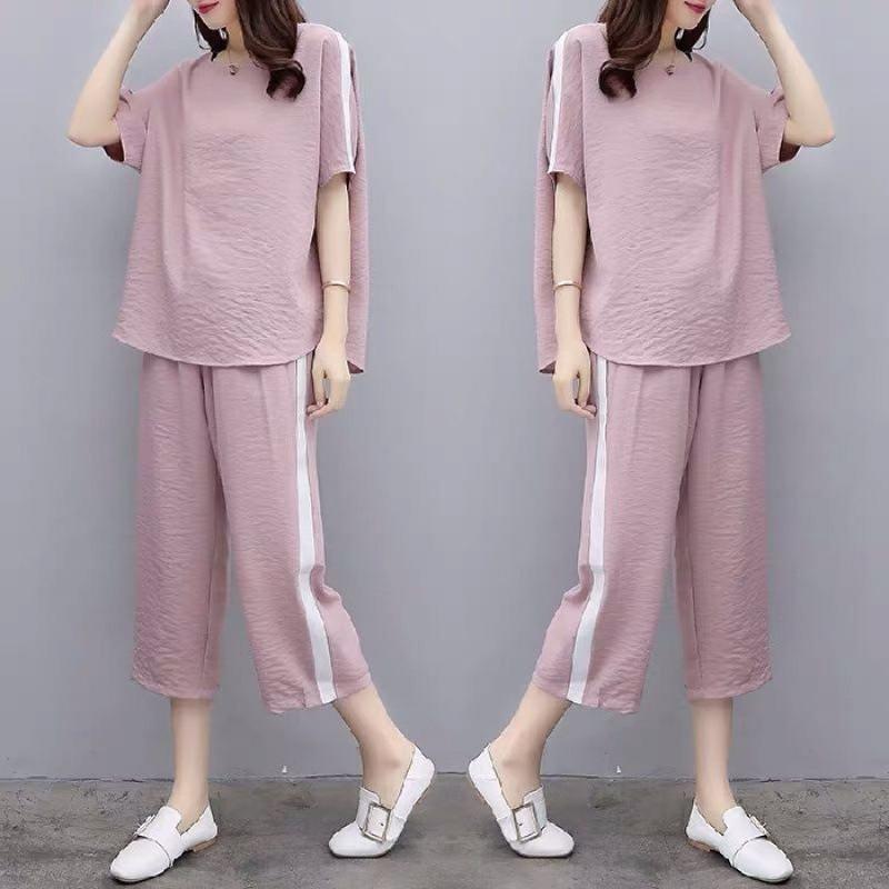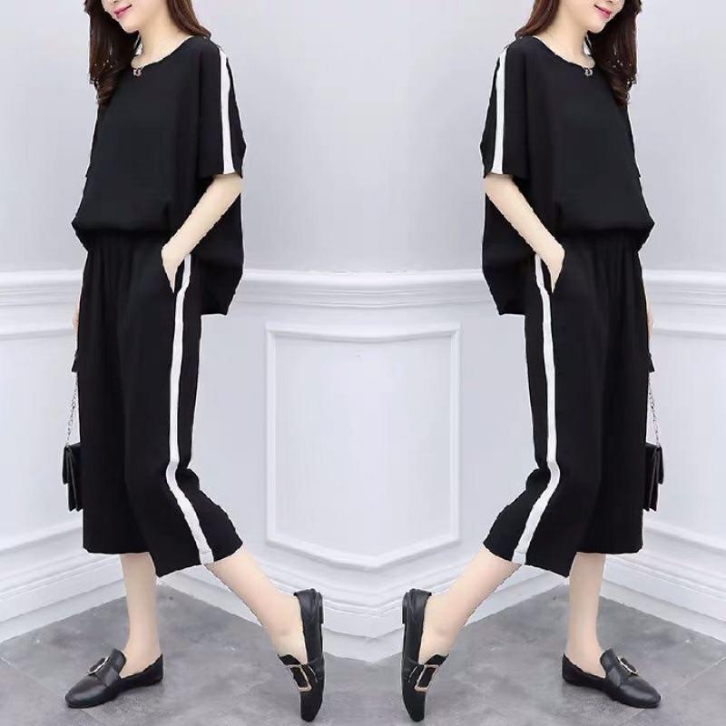 Летний повседневный спортивный комплект для женщин больших размеров, свободный, закрывающий живот, утягивающий, из двух частей, модный корейский стиль