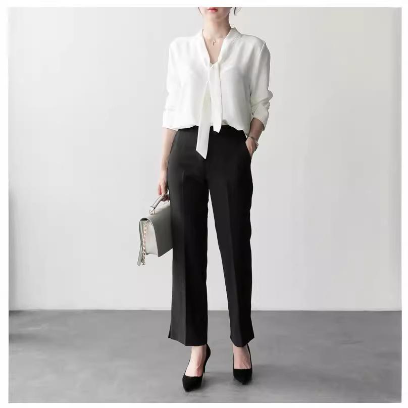Женская однотонная элегантная деловая рубашка с длинным рукавом и бантом, утягивающая для работы