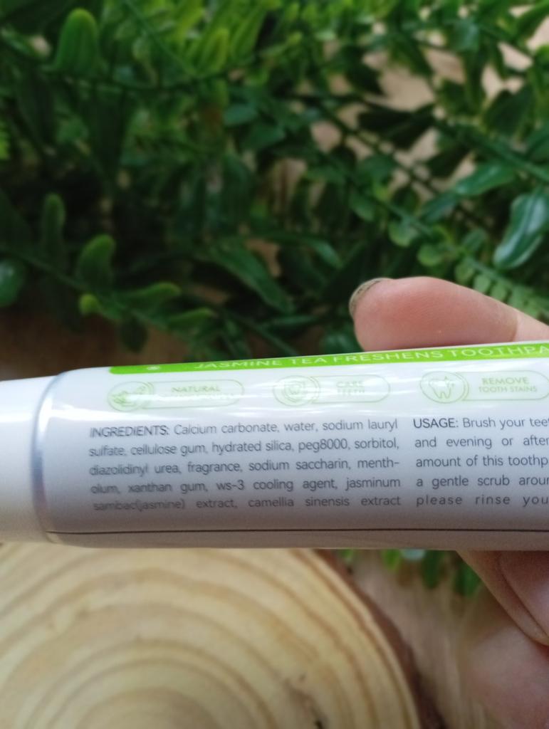 Зубная паста из Поднебесной. Что сказать, понравилась! Пахнет цветами, вкус приятный. Мылится хорошо, абразивные частицы вроде бы есть, и при этом она мягкая. Чистит отлично! Тюбик большой, 100 г. Стоит 279 рублей. Ну прелесть, короче. Можно брать. P. S. Состав сфотографировала, может, кому нужно. Из интересного- экстракты жасмина и камелии.