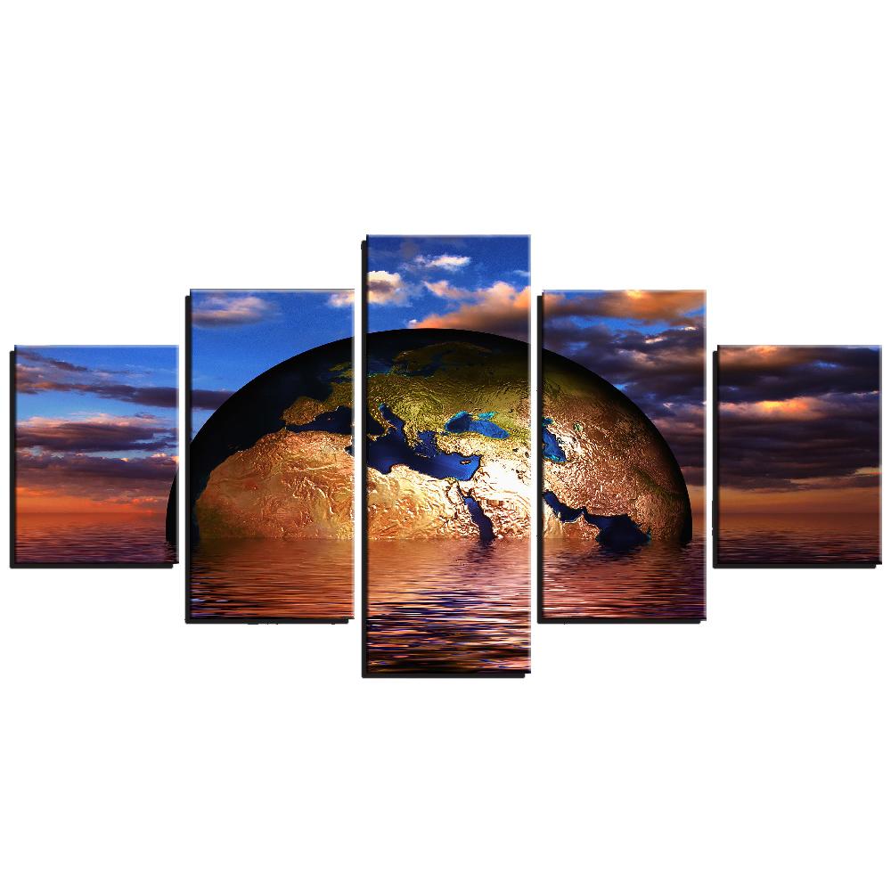 Настенная живопись на холсте, пейзажная картина, домашний декор, гостиная, HD принты, 5 шт., плакат «Земля в море», «Закат», без рамки