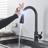 Выдвижной сенсорный черный кухонный кран с чувствительным сенсорным управлением, смеситель для кухни, сенсорный кухонный смеситель