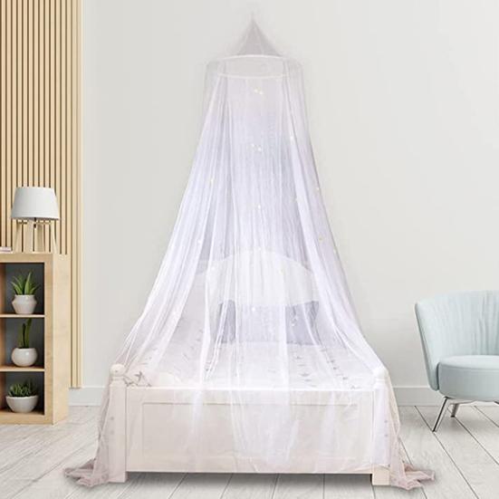 Превратите свое спальное место в безмятежную атмосферу с помощью этой изысканной москитной сетки.. Украшенный яркими светящимися звездами, которые легко наклеиваются, он не только украсит интерьер, но и создаст уютную атмосферу в вашей комнате..
