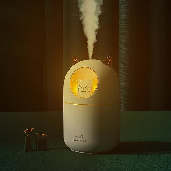 Этот увлажнитель воздуха, выполненный в форме милого кота, станет очаровательным украшением вашего помещения.. Встроенные цветные петлевые светильники создают успокаивающую атмосферу, идеально подходящую для релаксации или для детей, которые боятся темноты.. Для оптимальной эффективности перед использованием убедитесь, что ватный тампон полностью пропитан водой, и подождите несколько минут, чтобы вода впиталась.