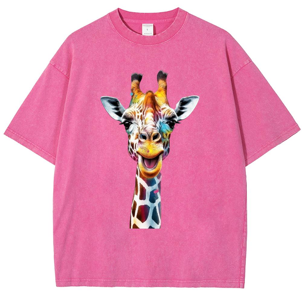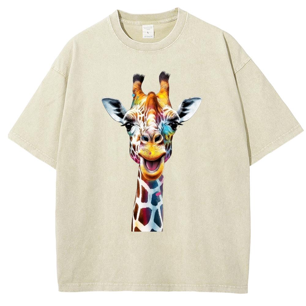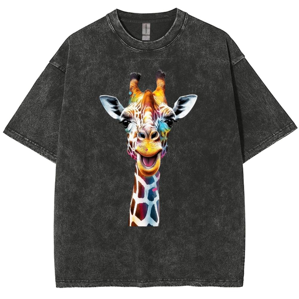 Футболка женская летняя белая большого размера Y2K с принтом жирафа, свободная, с коротким рукавом, унисекс, повседневная, простая, топ для мужчин