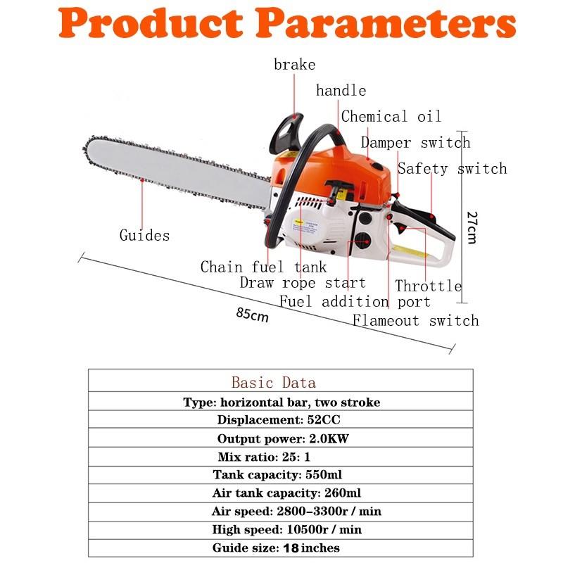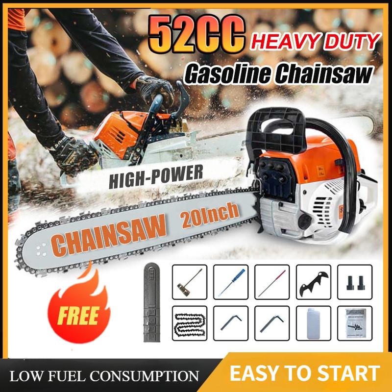 20-дюймовая мощная ручная бензиновая цепная пила 52CC Heavy Duty Wood Cutter Cordless Portable Logging Chainpila
