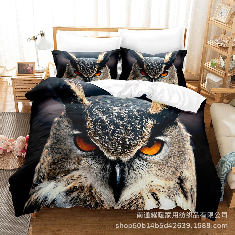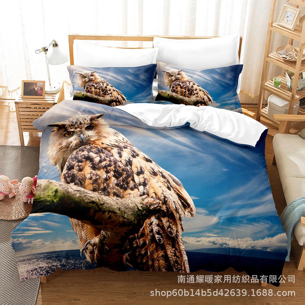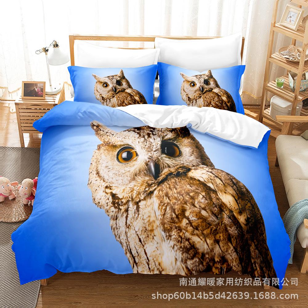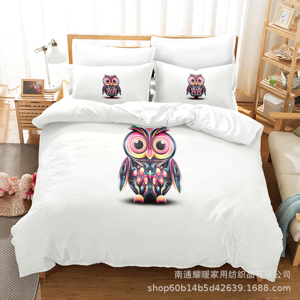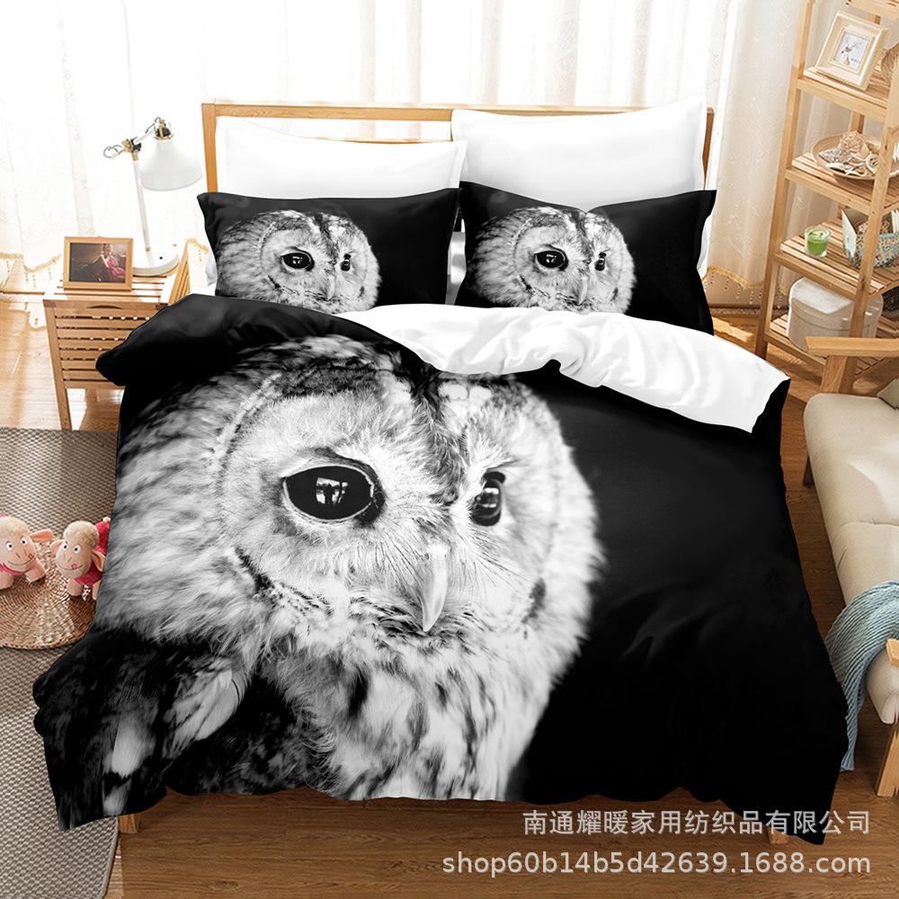 Постельное белье с 3D цифровой печатью Набор из четырех предметов Набор из трех предметов Сова Белая простыня Одеяло Подушка