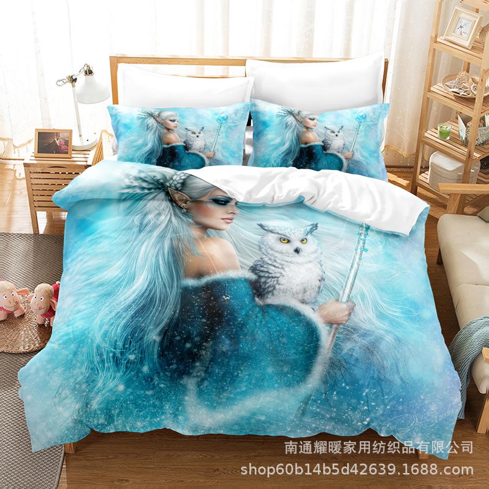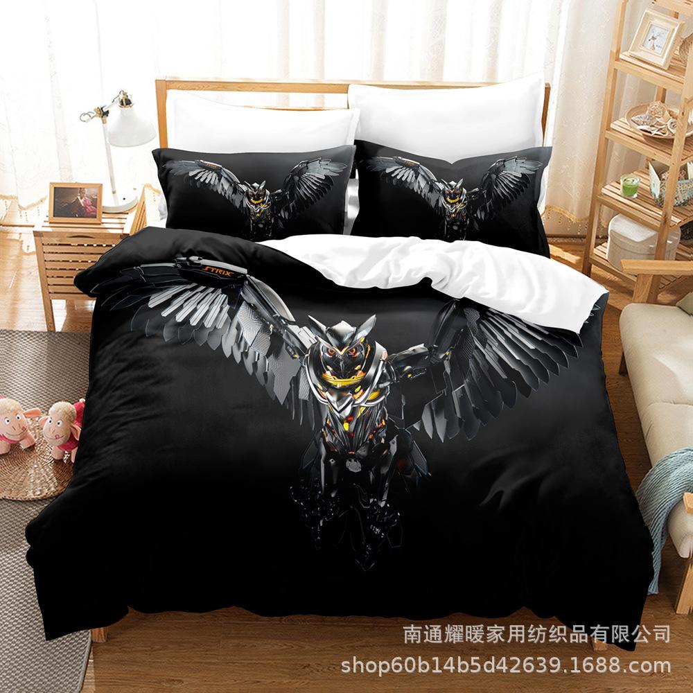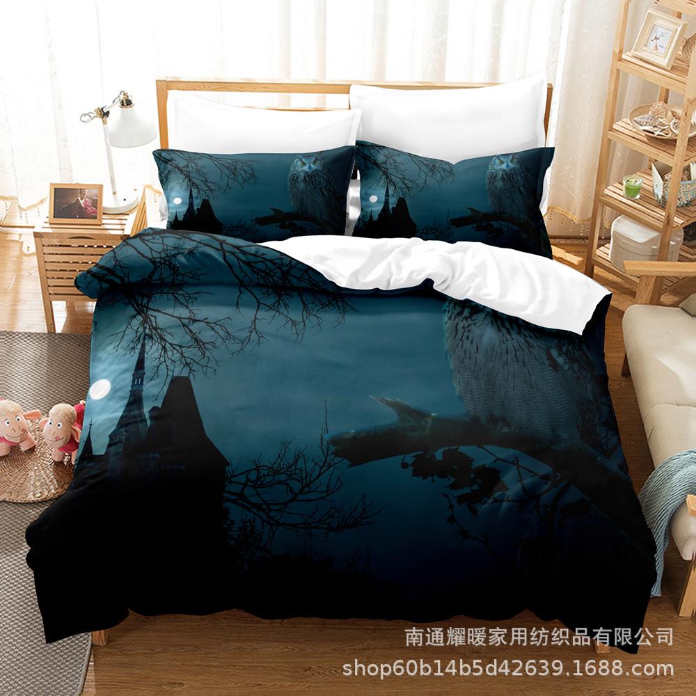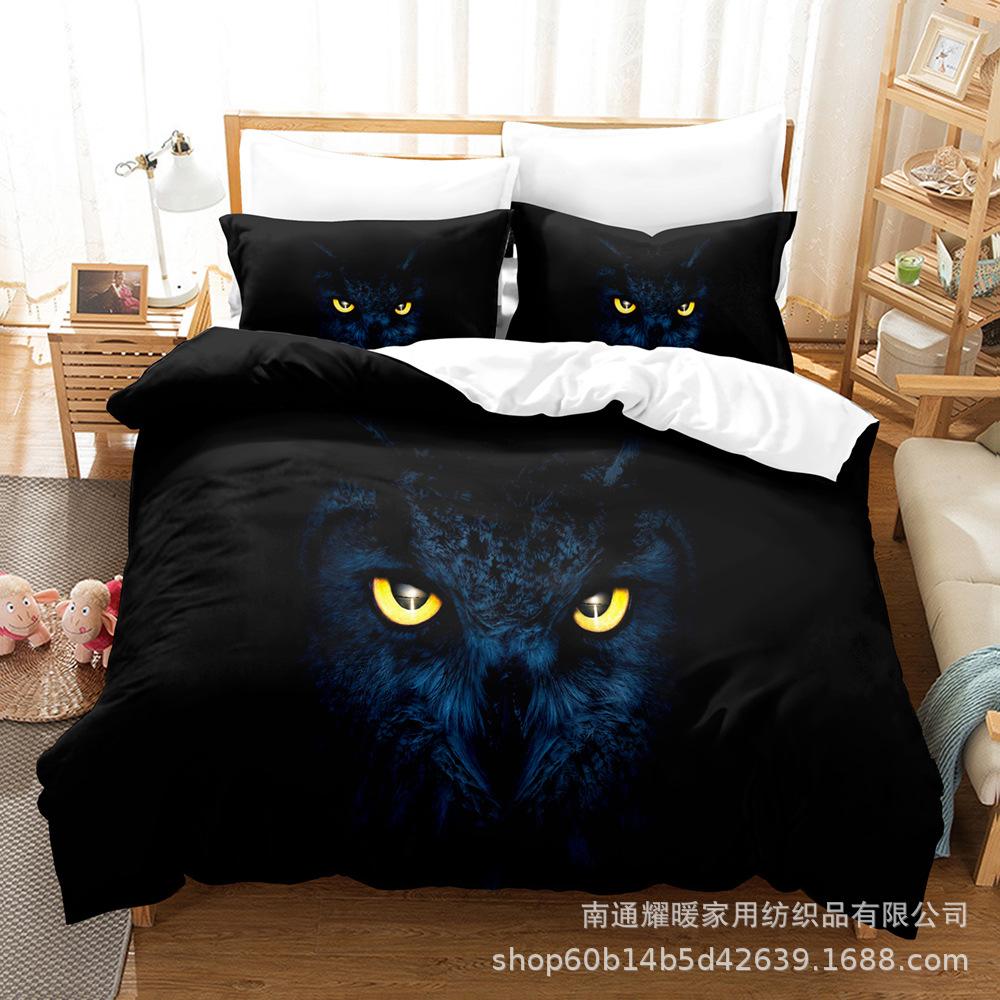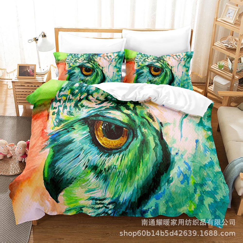 Постельное белье с 3D цифровой печатью Набор из четырех предметов Набор из трех предметов Сова Белая простыня Одеяло Подушка