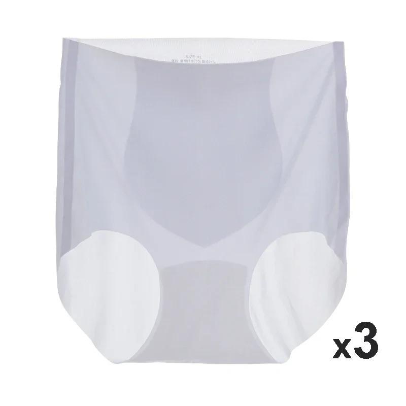 3 шт. бесшовное нижнее белье с высокой талией из ледяного шелка, летние ультратонкие быстросохнущие трусики Sense, женские прозрачные трусы