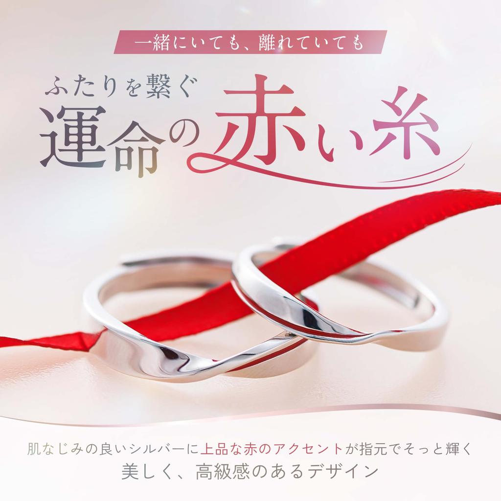 [The red thread of destiny that connects the two of us] A pairing design that connects the Möbius ring, which symbolizes eternal love, with a red thread line from front to back. This is a special pairing that will make you feel connected to your loved ones whether you are together or apart.