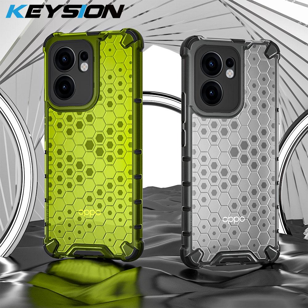 KEYSION Shockproof Armor Case for OPPO Reno13 F 5G Soft Silicone+PC Transparent Honeycomb Phone Back Cover for PPO Reno 13 F 4G — купить товар онлайн с бесплатной доставкой по всему миру!