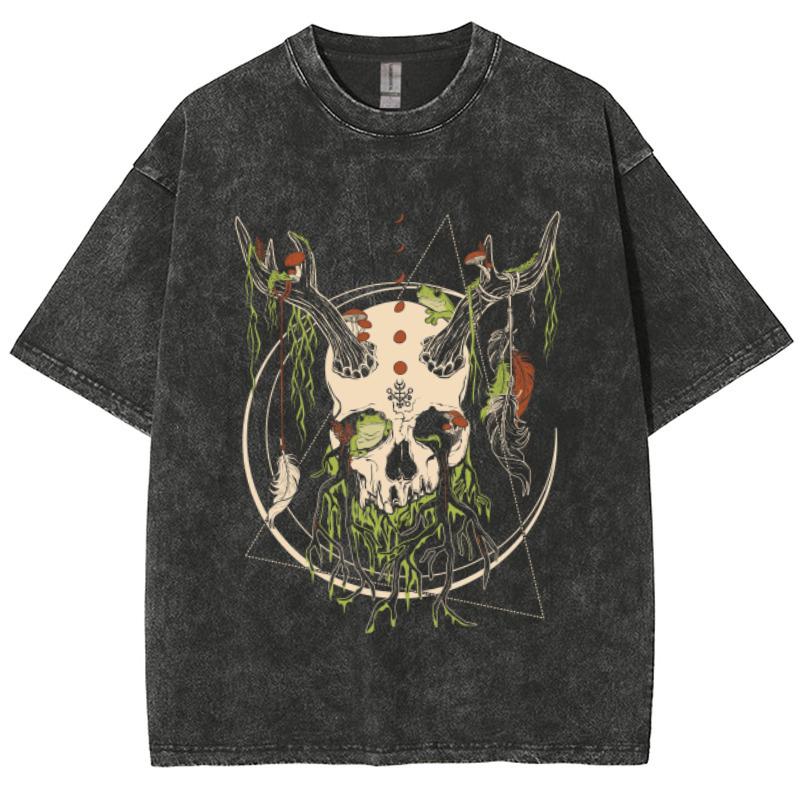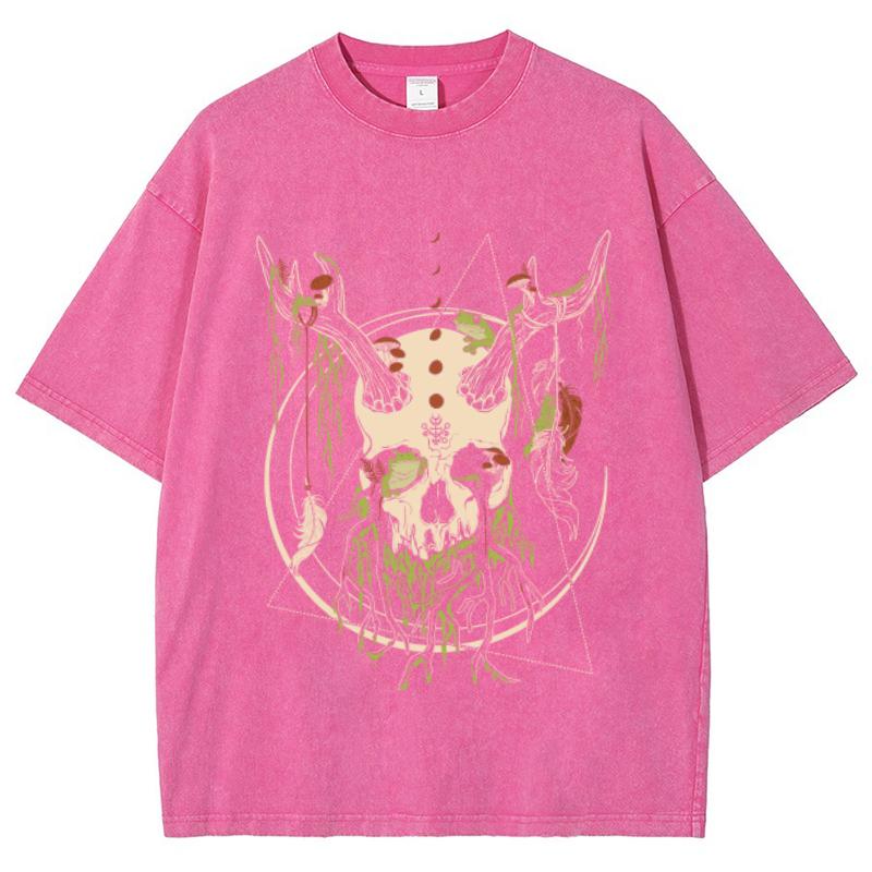 Разноцветная женская футболка с принтом мультяшного черепа, модная уличная потертость в стиле ретро, большой размер, короткий рукав, дизайн топа
