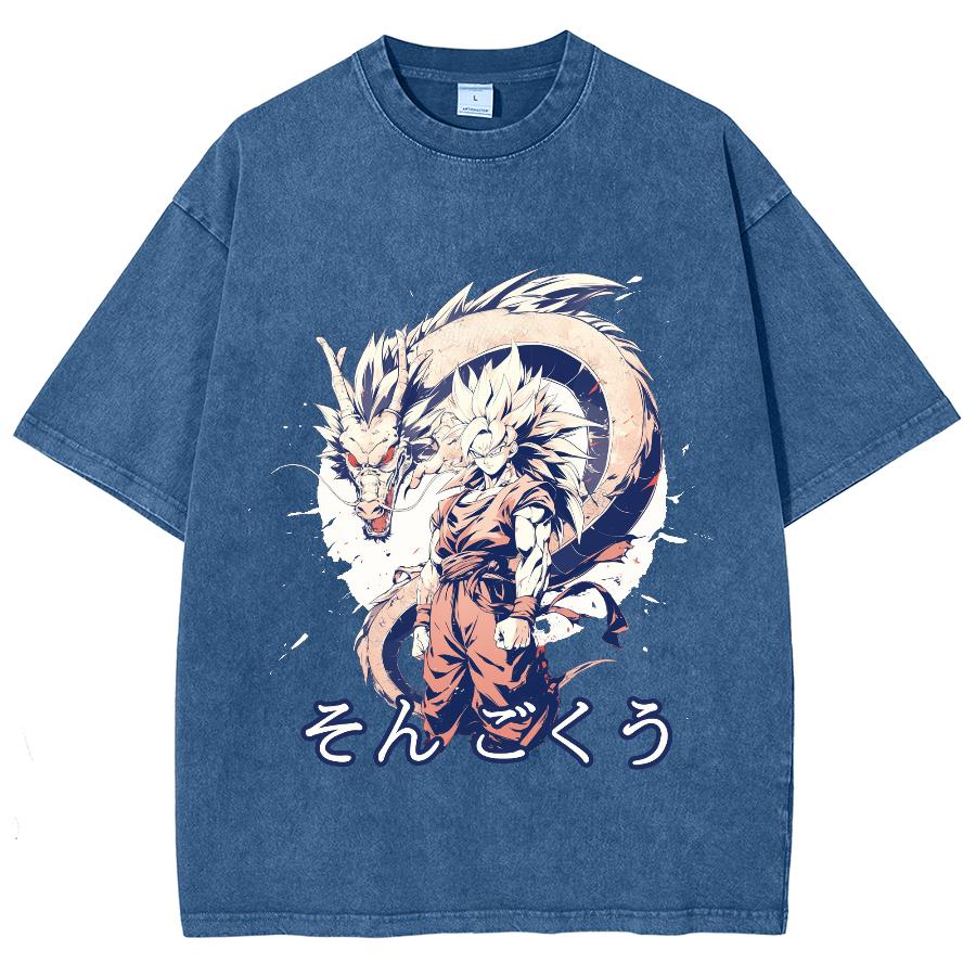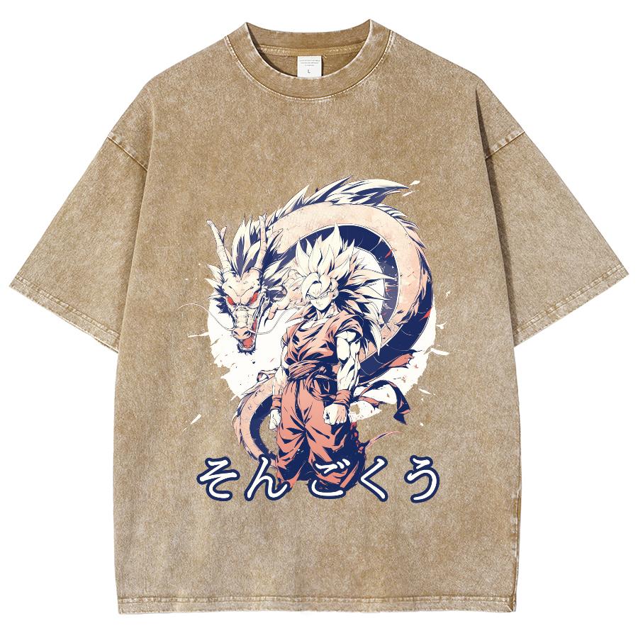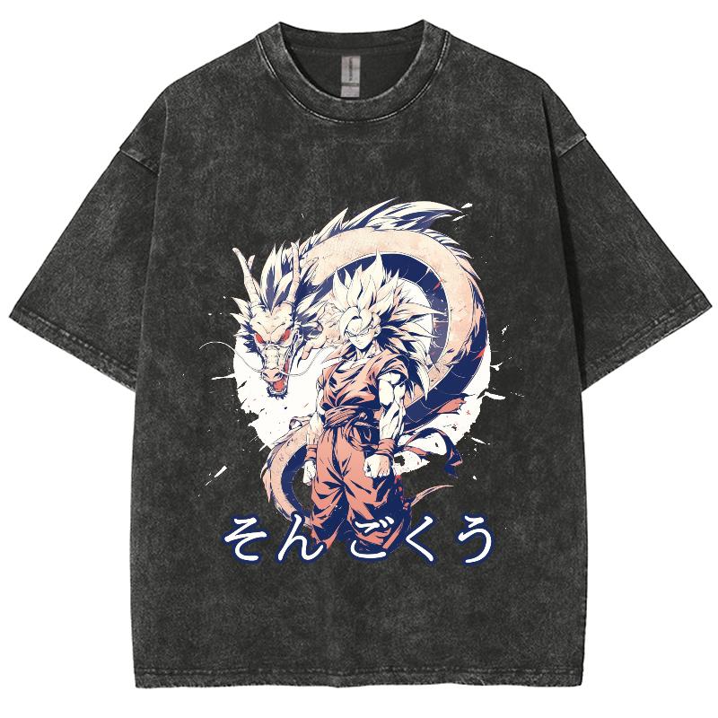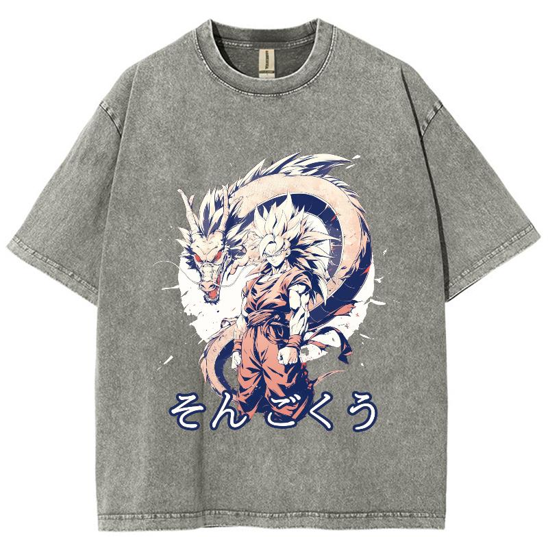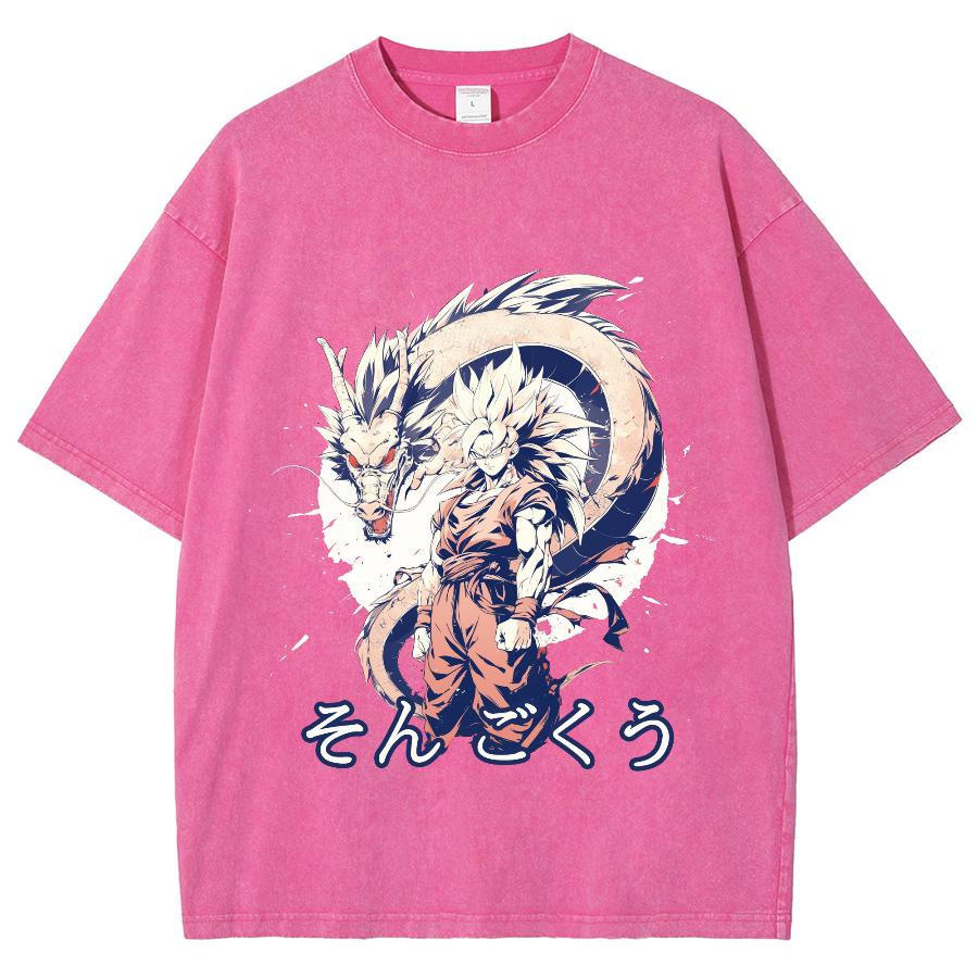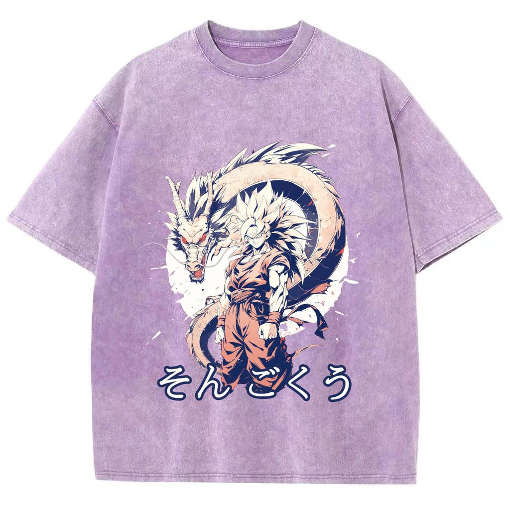Футболка женская с рисунком японского аниме-мультяшного дракона, чистый хлопок, удобный короткий рукав, круглый вырез, стираный унисекс-топ