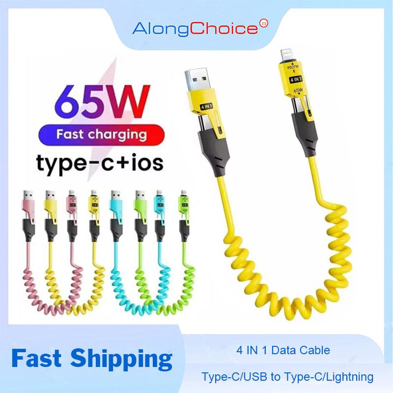 65 Вт быстрое зарядное устройство пружинный USB-кабель 4 в 1 пружинный кабель передачи данных 6A USB Type C пружинный телескопический провод для iPhone iPad MacBook Huawei — купить товар онлайн с бесплатной доставкой по всему миру!