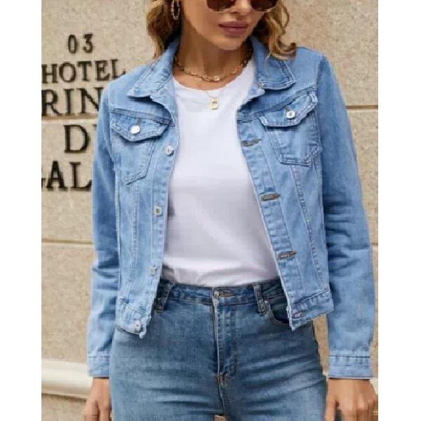 Женская модная тенденция с карманами на лацканах, однобортная короткая джинсовая куртка — купить товар онлайн с бесплатной доставкой по всему миру!