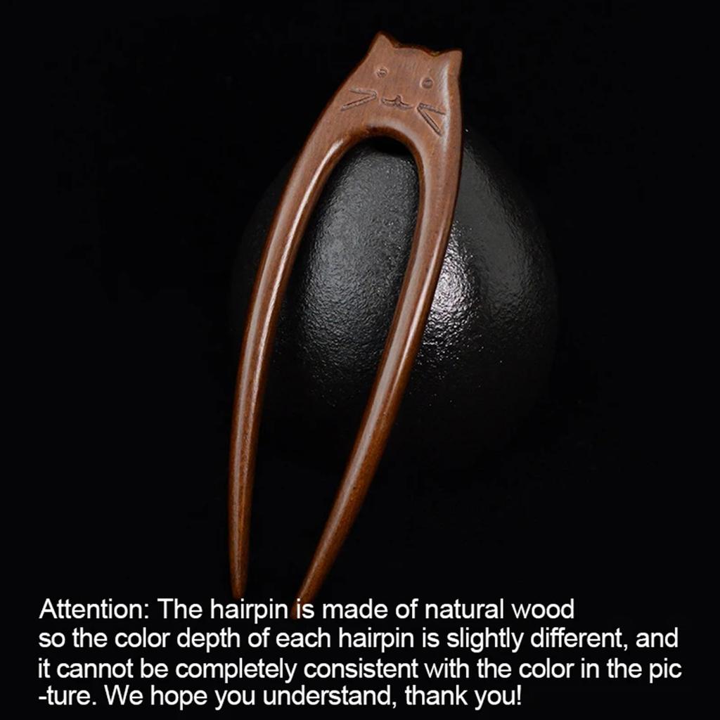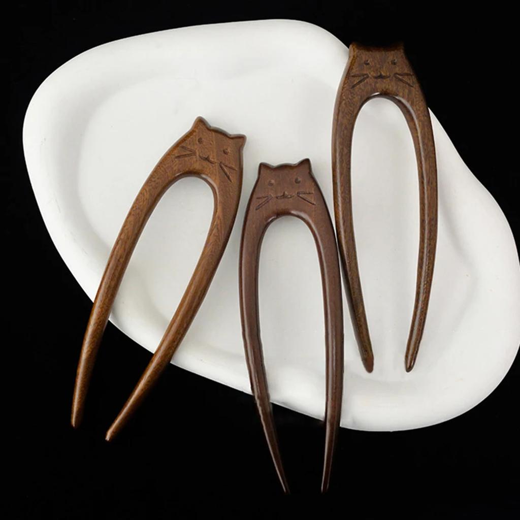 Деревянные палочки для волос с узором в виде китайской кошки, U-образные заколки для волос, аксессуары для волос для женщин и девочек, головные уборы ханьфу