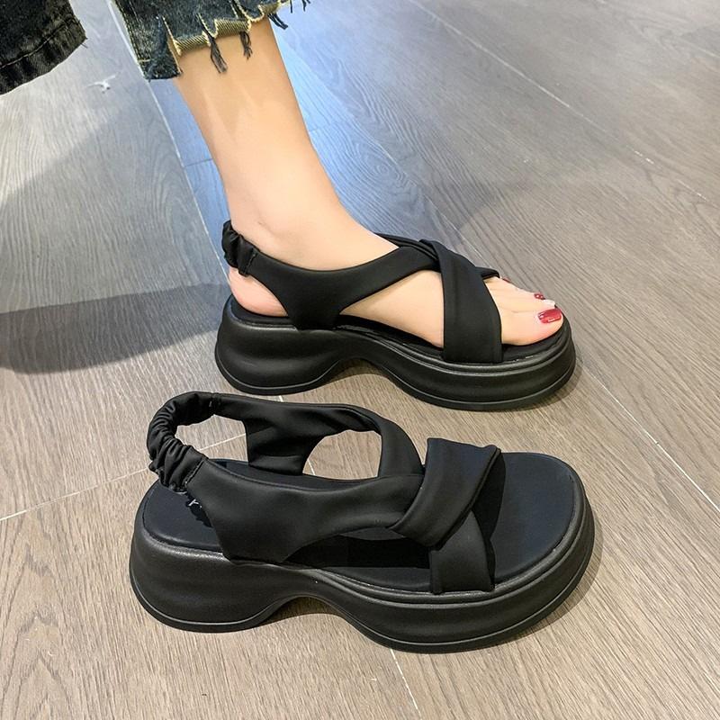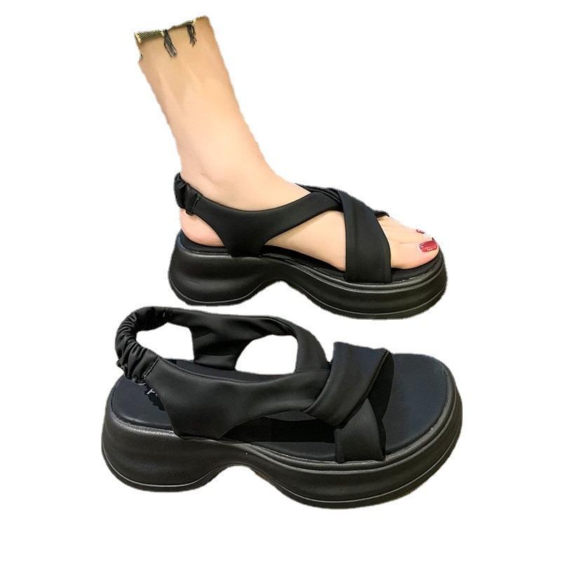 Женские босоножки на платформе, летние, новые, корейские, с открытым носком, с резинкой, студенческие, римские пляжные сандалии
