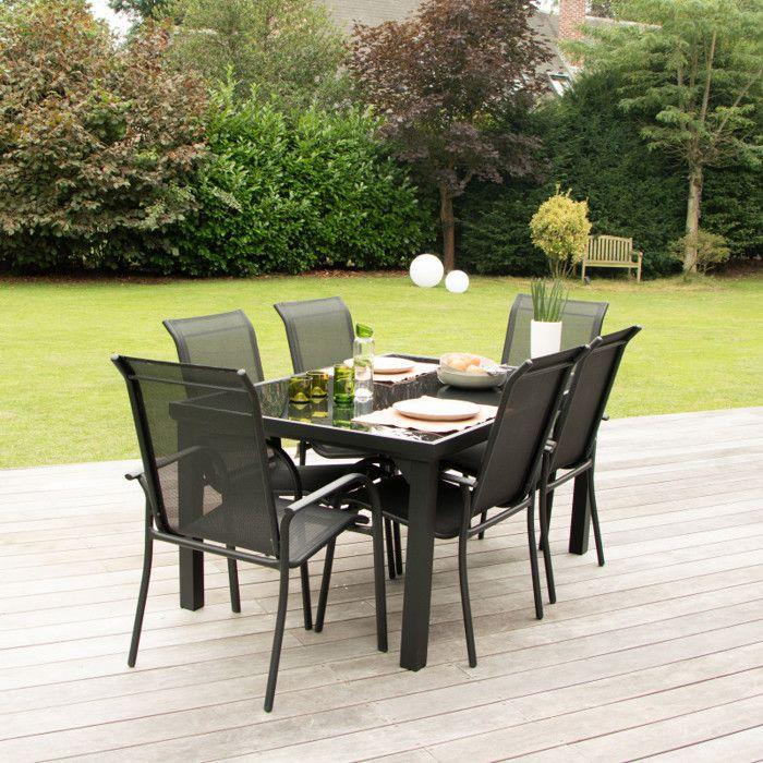 Salon de jardin en aluminium et verre Black Edition 6 places Wilsa Garden — купить товар онлайн с бесплатной доставкой до всему миру!
