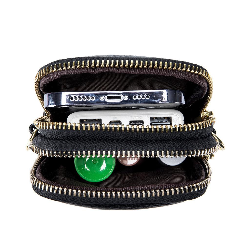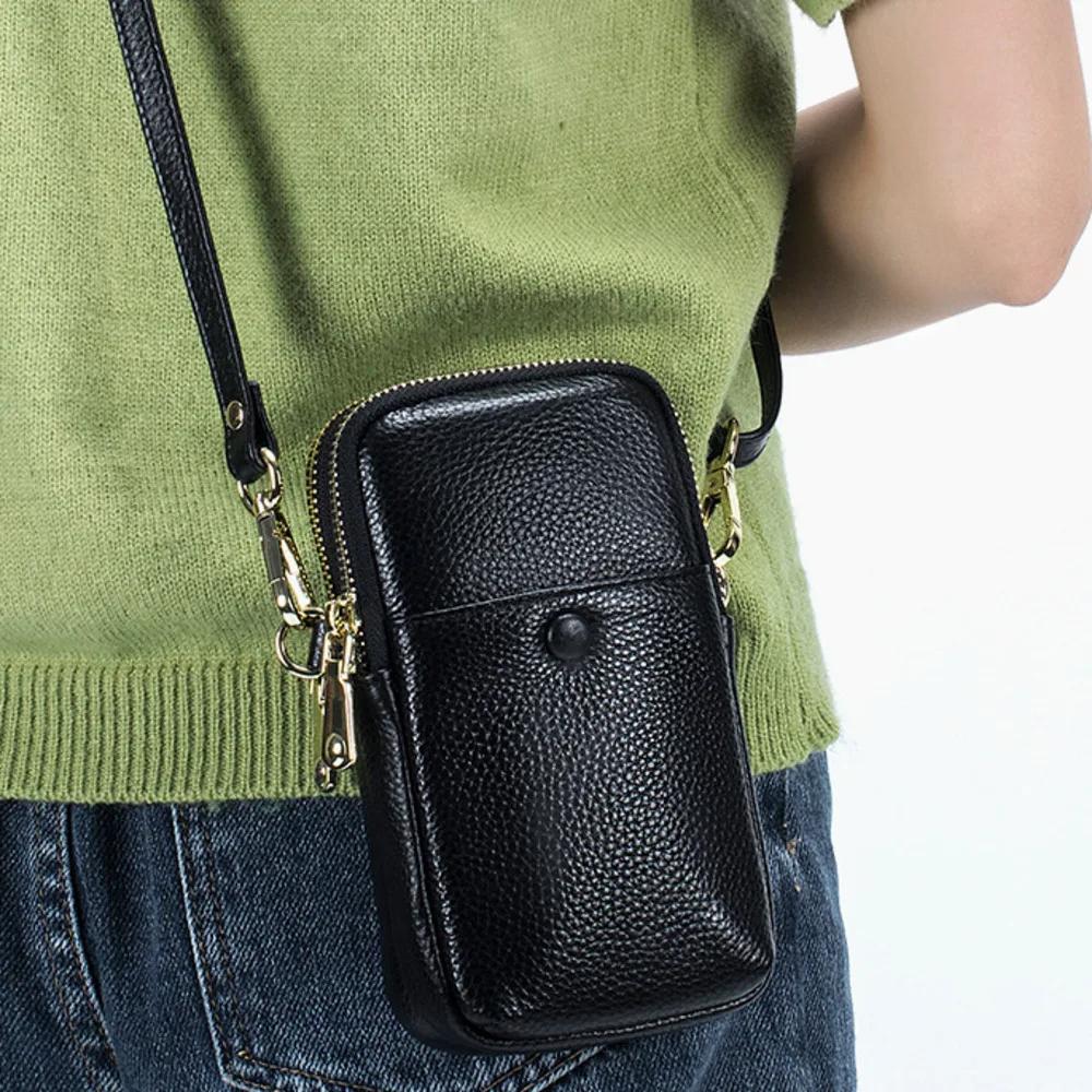 Женская сумка из натуральной кожи с двойной молнией на плечо, сумка из коровьей кожи для мобильного телефона, модная женская маленькая сумка через плечо