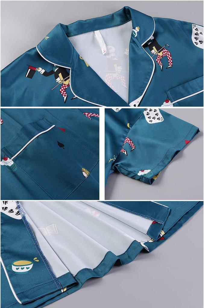 Имитация короткого лета [Rose Halcyon] Женская пижама, домашняя одежда, ночная одежда, домашняя одежда, одежда для отдыха, атлас, шелк, рукава, брюки, комплект из 2 предметов, милый,