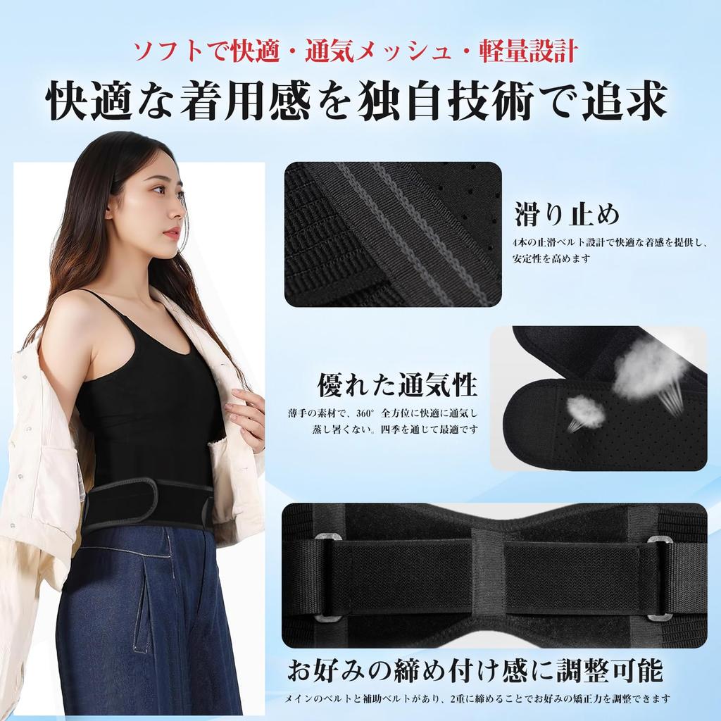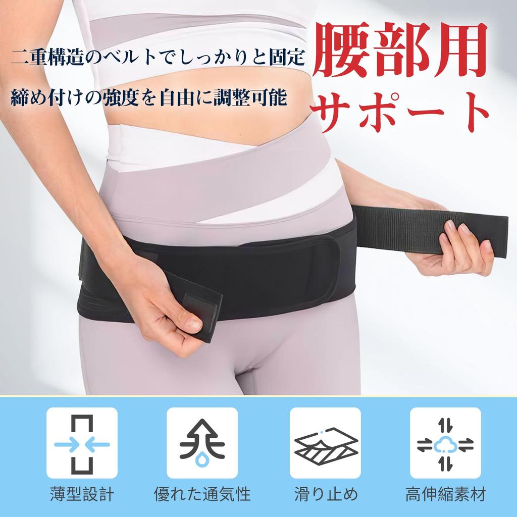 [Удобно носить, так как не скользит] Конструкция с двумя ремнями позволяет регулировать натяжение талии и таза по отдельности. Это позволяет вам подобрать посадку, которая больше соответствует вашему индивидуальному типу телосложения и предпочтениям.. Конструкция с липучкой позволяет легко надевать и снимать повязку, а также надежно фиксирует ее и не допускает соскальзывания.