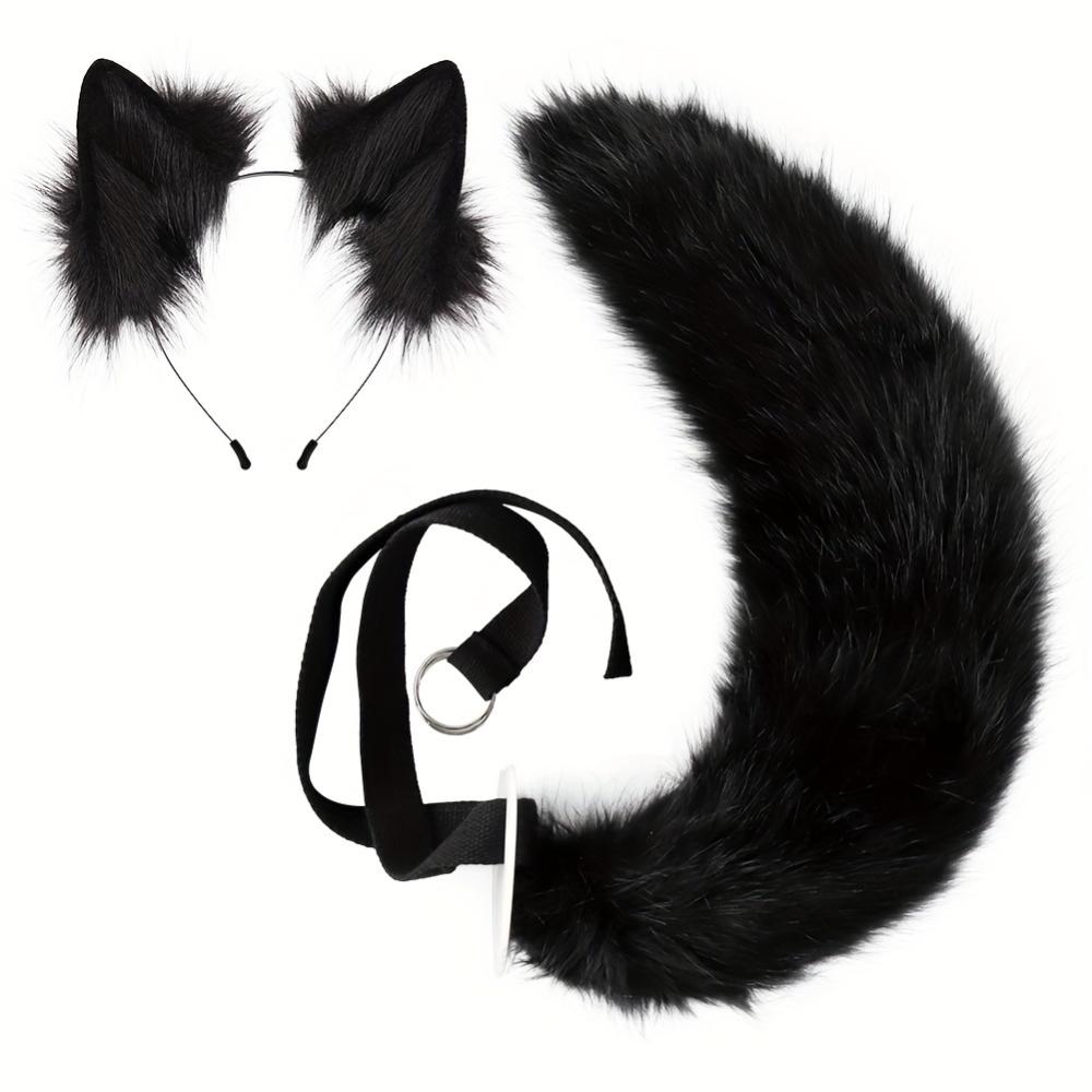 Комплект из 2 предметов: регулируемый пушистый хвост и съемные уши, подходит для вечеринок с животными на Хэллоуин, косплей в подарок на Хэллоуин