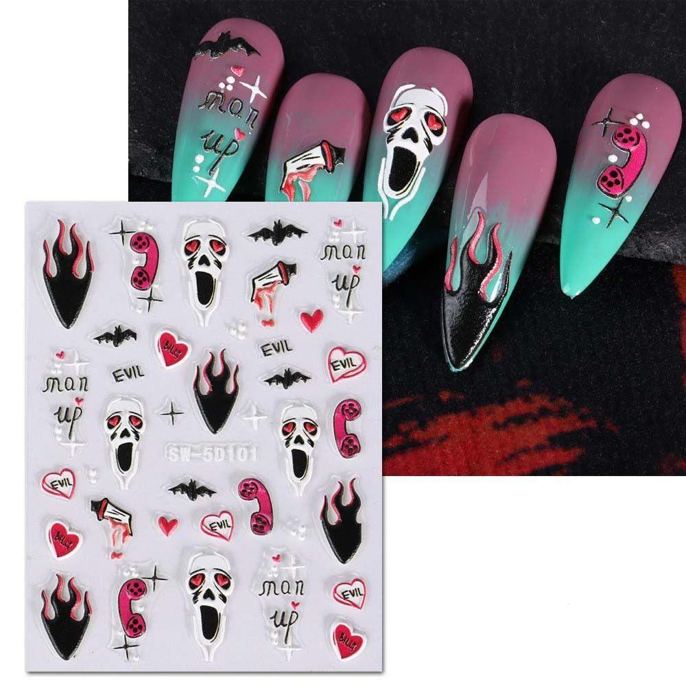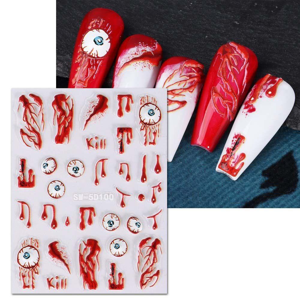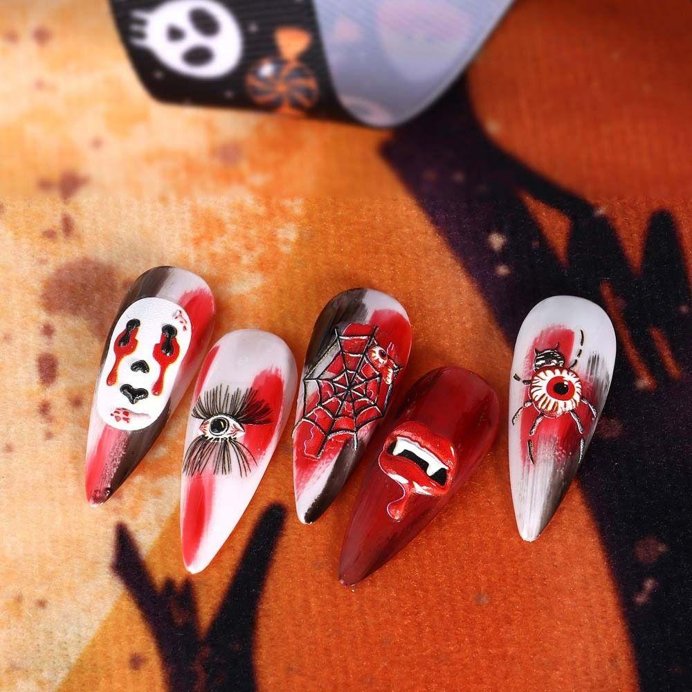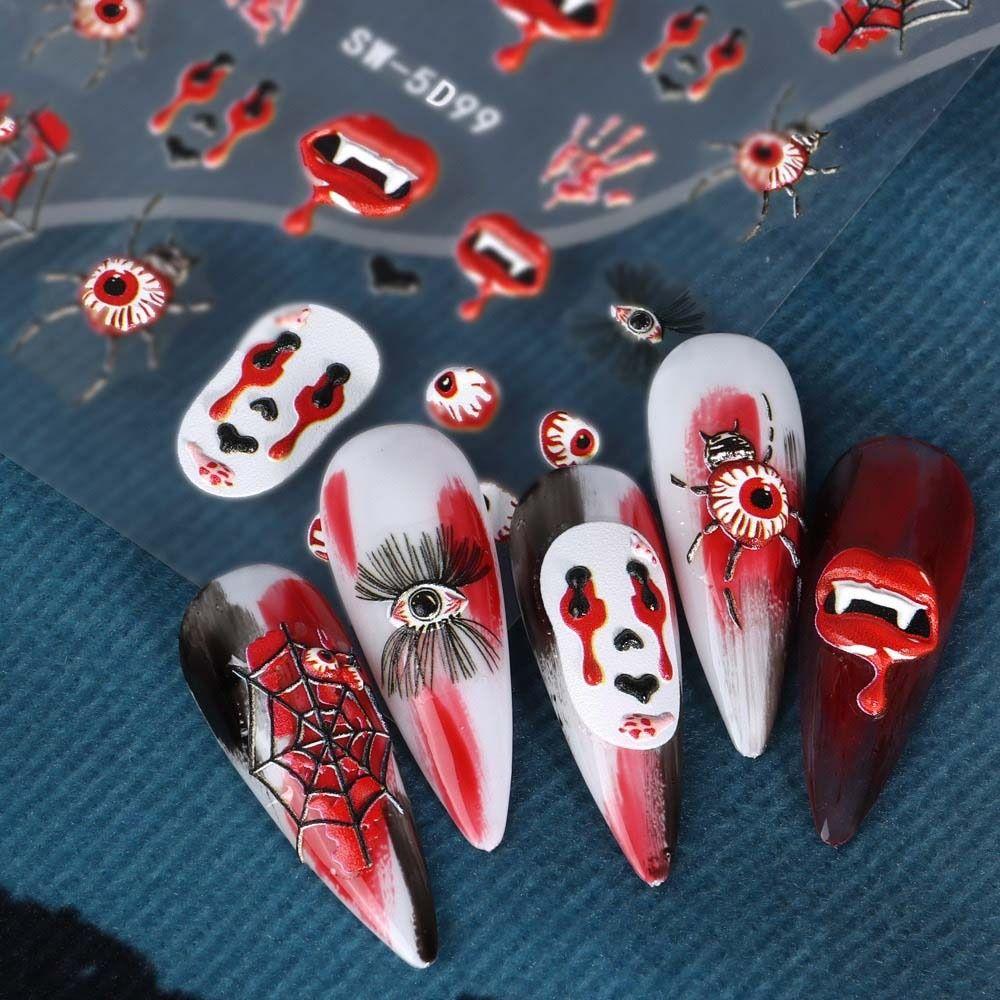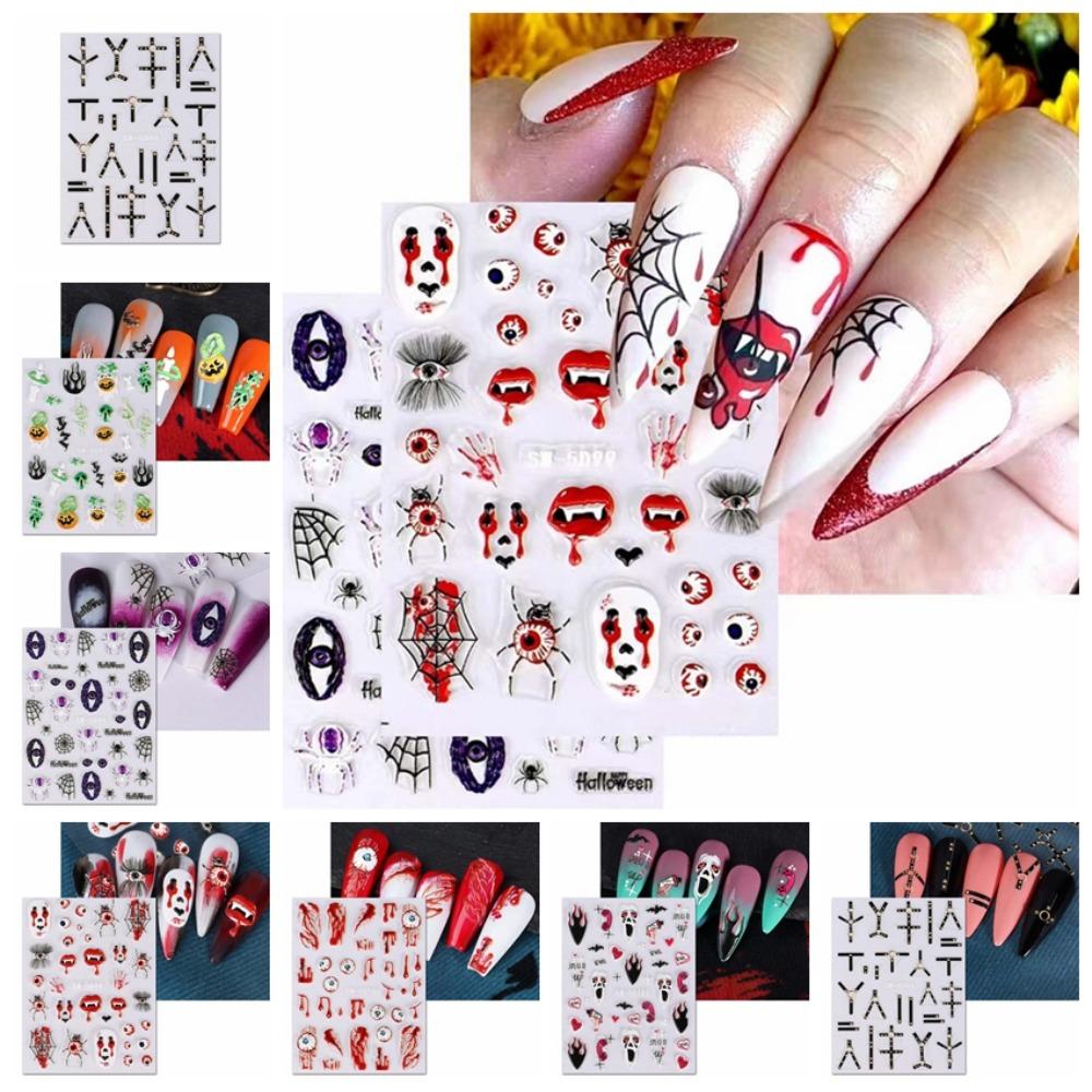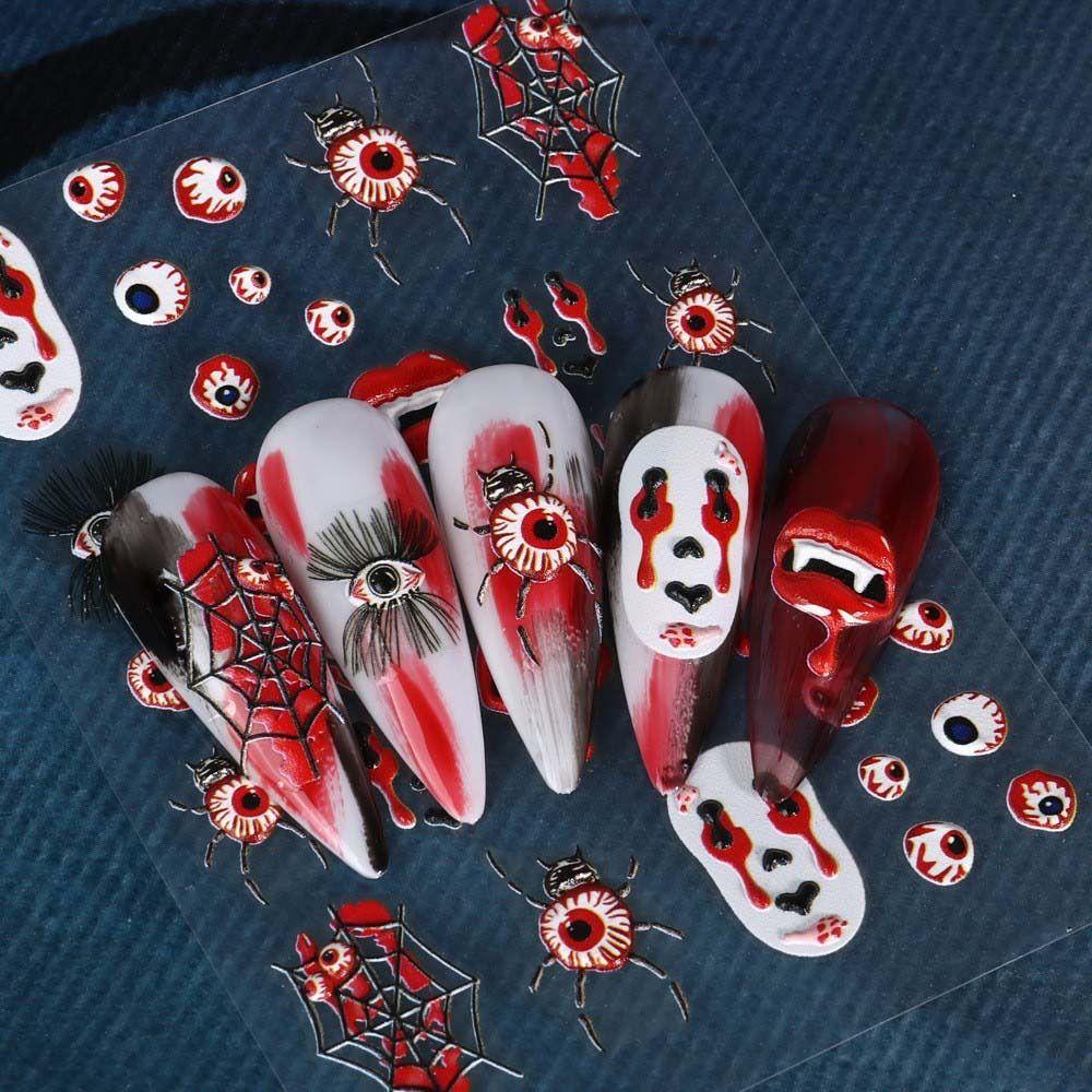 Темные демонические глаза наклейки на ногти на Хэллоуин клоунские губы маска наклейки на ногти на Хэллоуин маникюрщица