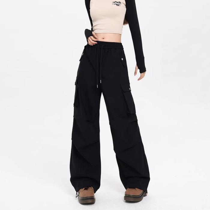 Женские рабочие повседневные брюки прямого покроя с высокой талией. Осень. Новые свободные спортивные брюки с драпировкой и широкими штанинами. — купить товар онлайн с бесплатной доставкой по всему миру!