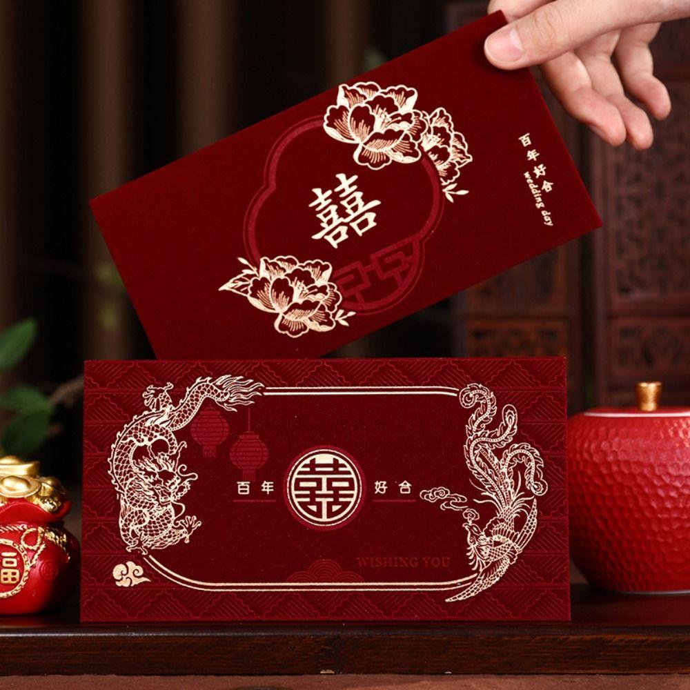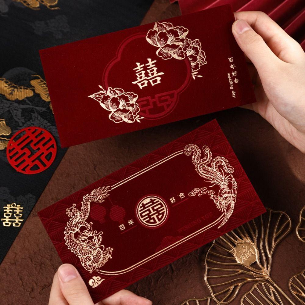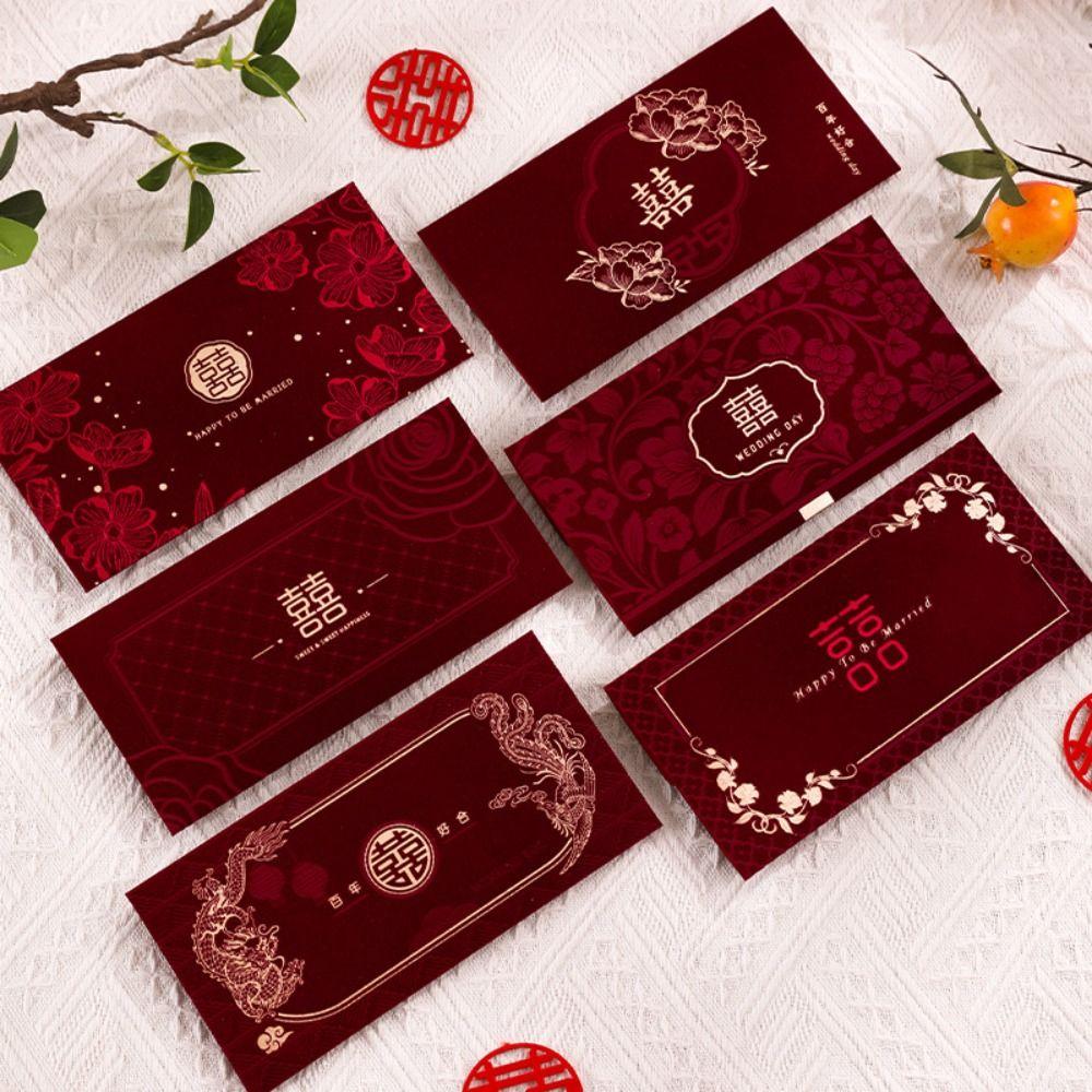 6 шт. Китайский стиль счастливые деньги карманы стекающиеся бумажные деньги пакеты свадебные красные конверты детский подарок
