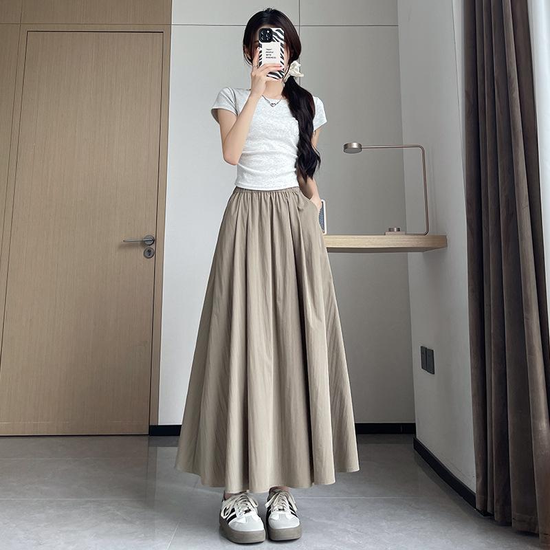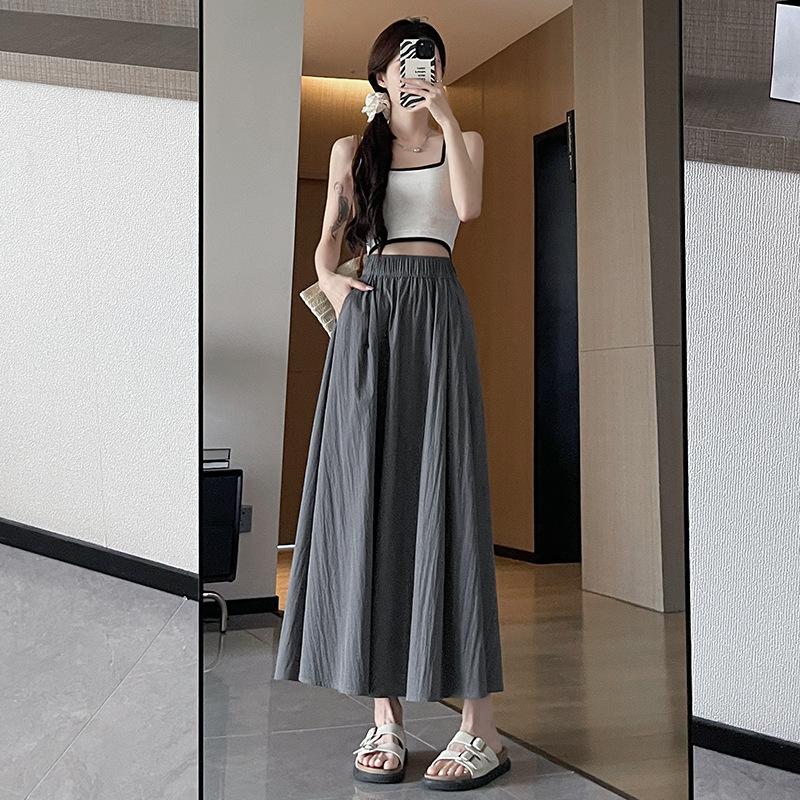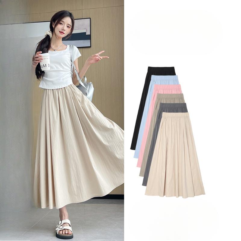 Юбка из ледяного шелка, женская летняя юбка А-силуэта с высокой талией, юбка-зонтик с широкими качелями, юбка-драпировка