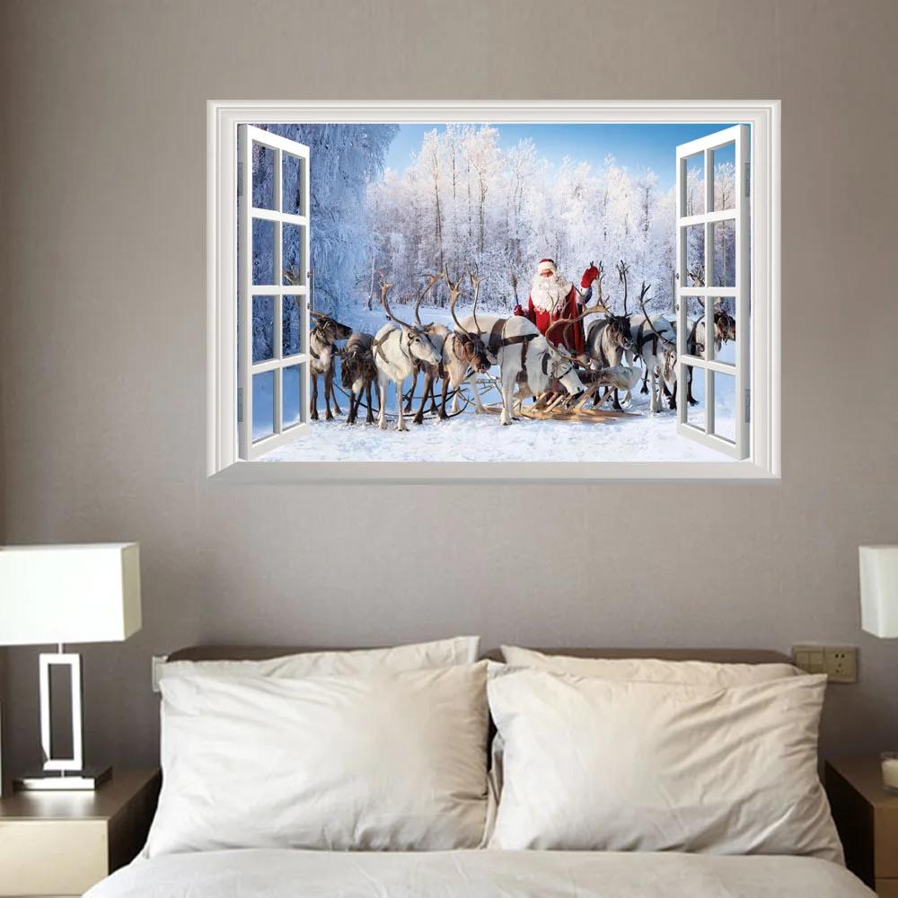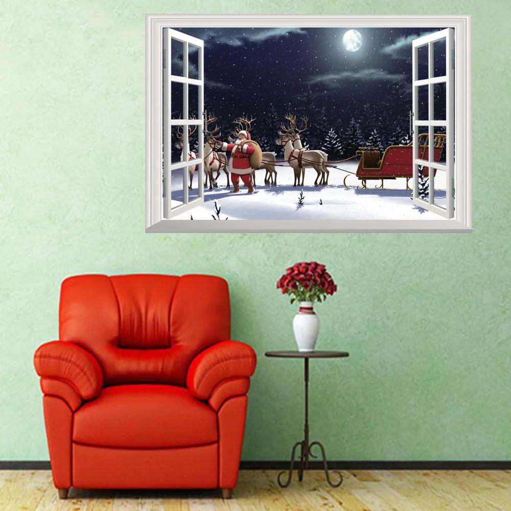 Рождественские поддельные окна 3D настенные наклейки для дома рождественские украшения наклейки на окна Санта-Клаус украшение для комнаты с рождественской елкой
